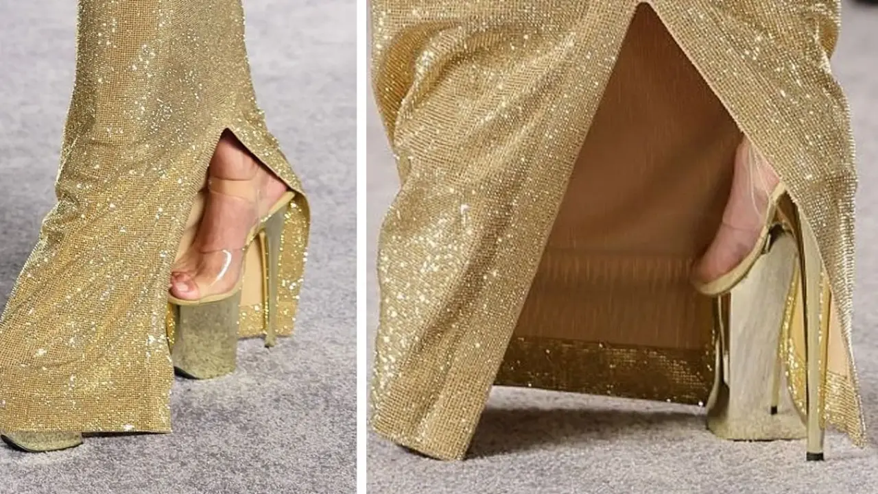 Ancak gecenin en çok konuşulan detayı elbisesinden çok ayakkabıları oldu.