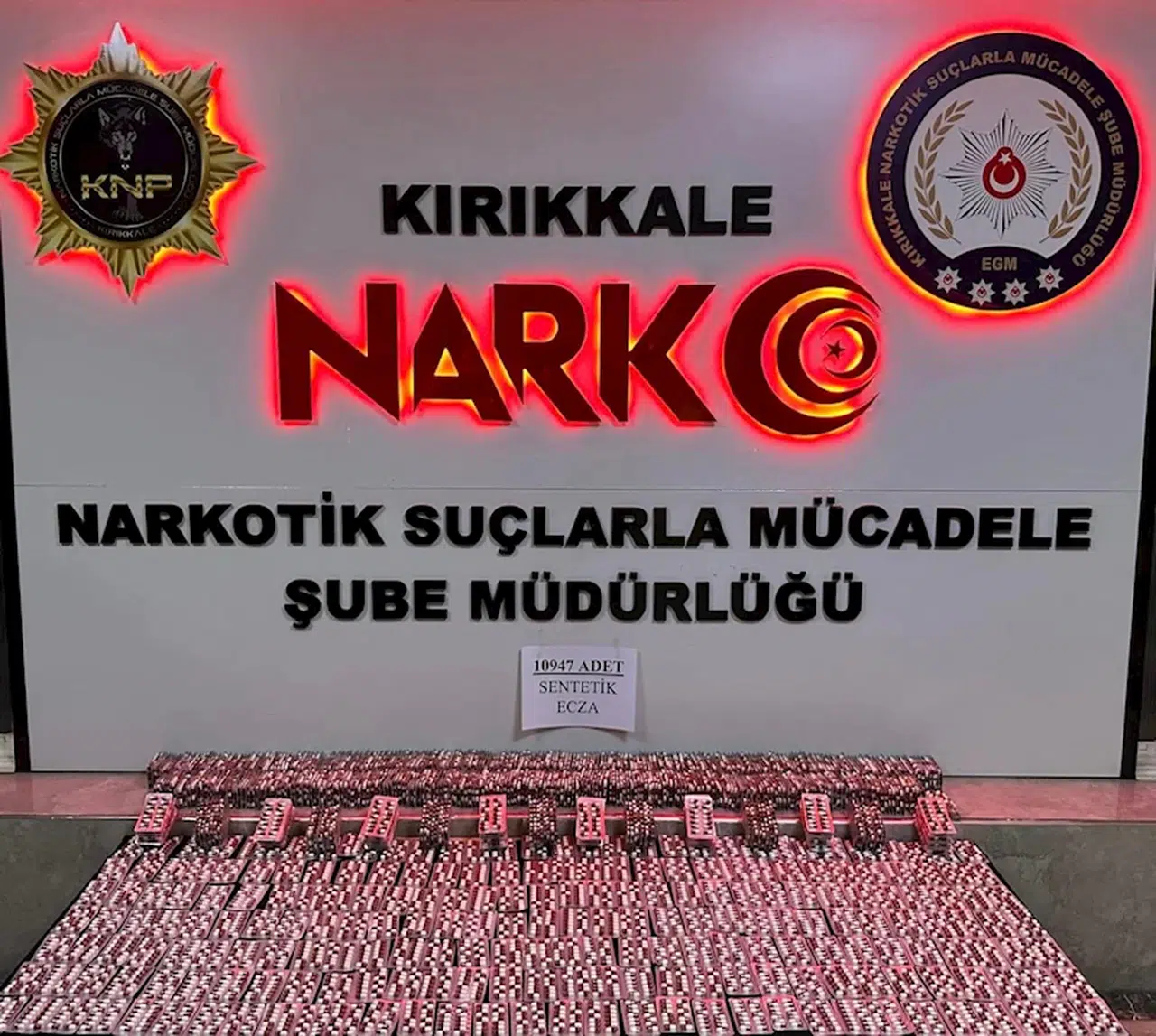 Burak CAN/KIRIKKALE, (DHA)- KIRIKKALE'de düzenlenen narkotik operasyonunda 10 bin 947 sentetik hap ele geçirildi, 3 şüpheli gözaltına alındı.