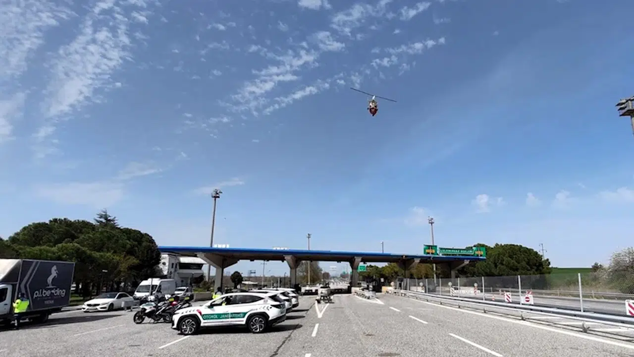Kırklareli İl Jandarma Komutanlığı Otoyol Jandarma Timleri, trafik kazalarından kaynaklanan can kayıplarını ve yaralanmaları en aza indirmek için Babaeski ve Lüleburgaz ilçelerindeki E-80 otoyolunda Cayrokopter ile havadan trafik denetimi yaptı. Jandarmanın sosyal medya hesabından yapılan paylaşımda, "Vatandaşlarımızın huzur ve güveni için denetimlerimiz devam edecektir. Trafikte yaşanabilecek olumsuzlukları en aza indirmek ve kural ihlali yapan sürücüleri tespit etmek için yapılan uygulamada, sürücülerin emniyet kemeri kullanımı, seyir halindeyken cep telefonuyla konuşmaları, hız limitini aşma başta olmak üzere trafikte risk teşkil edebilecek durumlar havadan kontrol edildi" denildi. (DHA)