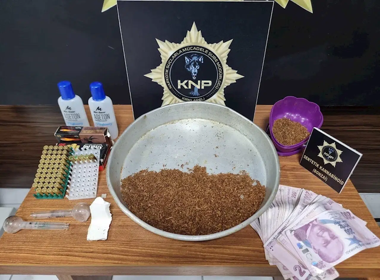 İl Emniyet Müdürlüğü Narkotik Suçlarla Mücadele Şube Müdürlüğü ekiplerinin yaptığı çalışmada Cumhuriyet Mahallesi’nde bir adreste uyuşturucu bulunduğunu belirledi. Adrese operasyon düzenleyen polis yaptığı aramada, 48.77 gram bonzai, 12.42 gram esrar, 13.67 gram metamfetamin, 1 hassas terazi, 3 uyuşturucu kullanma aparatı, 1 tabanca, 59 mermi, suçtan elde edildiği değerlendirilen 87 bin 800 TL ele geçirildi.