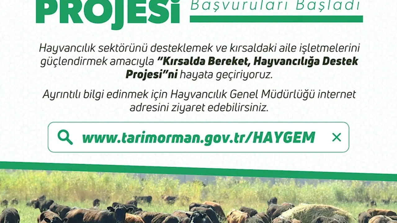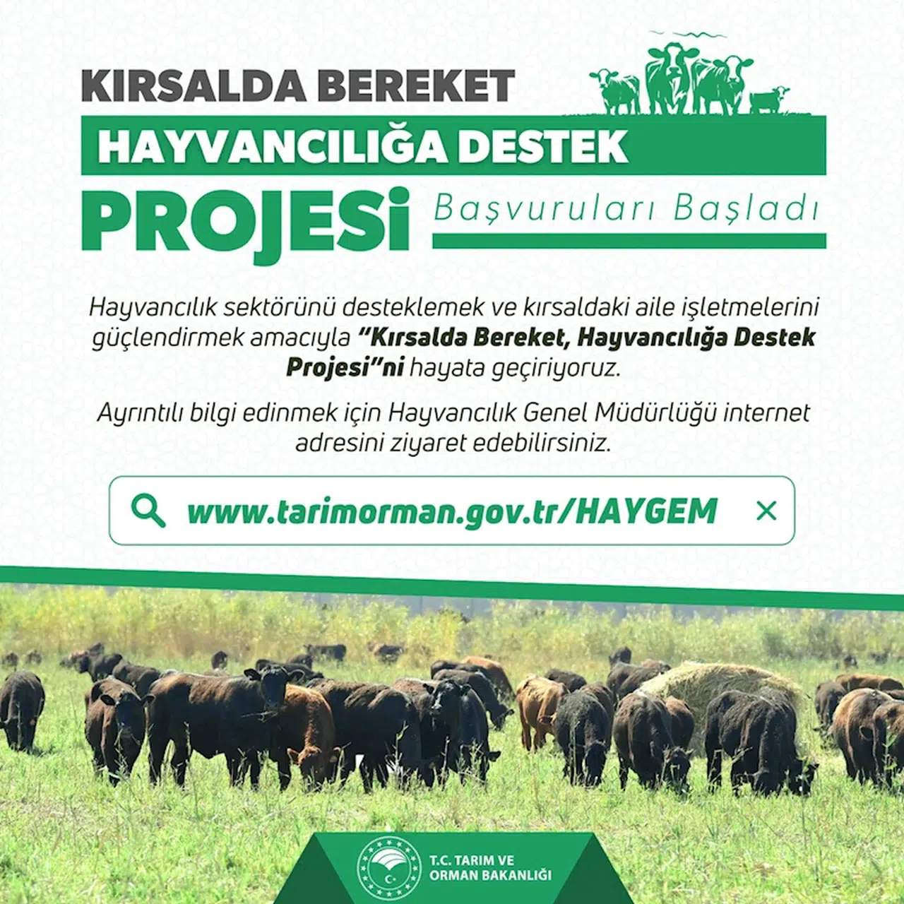 ANKARA, (DHA)-TARIM ve Orman Bakanlığı, hayvancılık sektörünü desteklemek ve kırsaldaki aile işletmelerini güçlendirmek amacıyla 'Kırsalda Bereket, Hayvancılığa Destek Projesi'ni hayata geçiriyor.