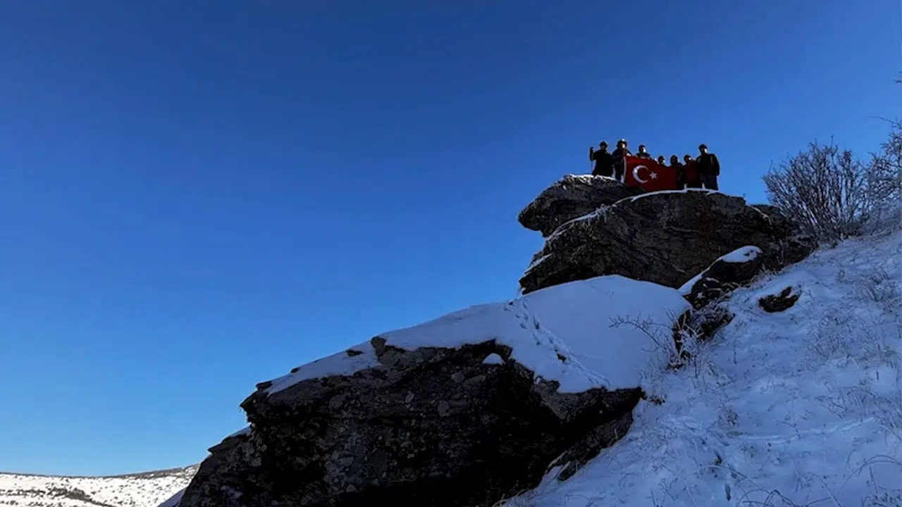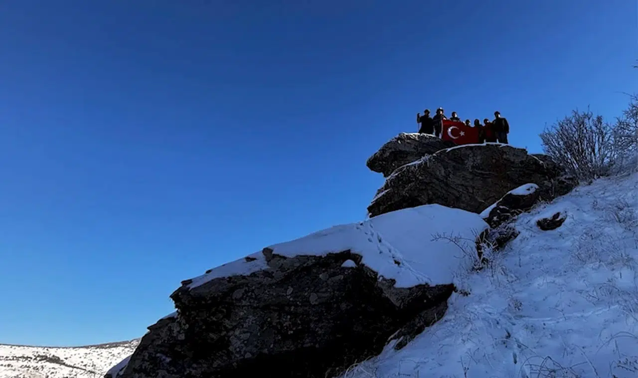 Fahrettin TOKER/KIRŞEHİR, (DHA)- KIRŞEHİR'in Kaman ilçesinde dağcılar, 2025 yılının ilk zirve tırmanışını 1647 metre yükseklikteki Neşet Ertaş Gönül Dağı'na gerçekleştirdi.