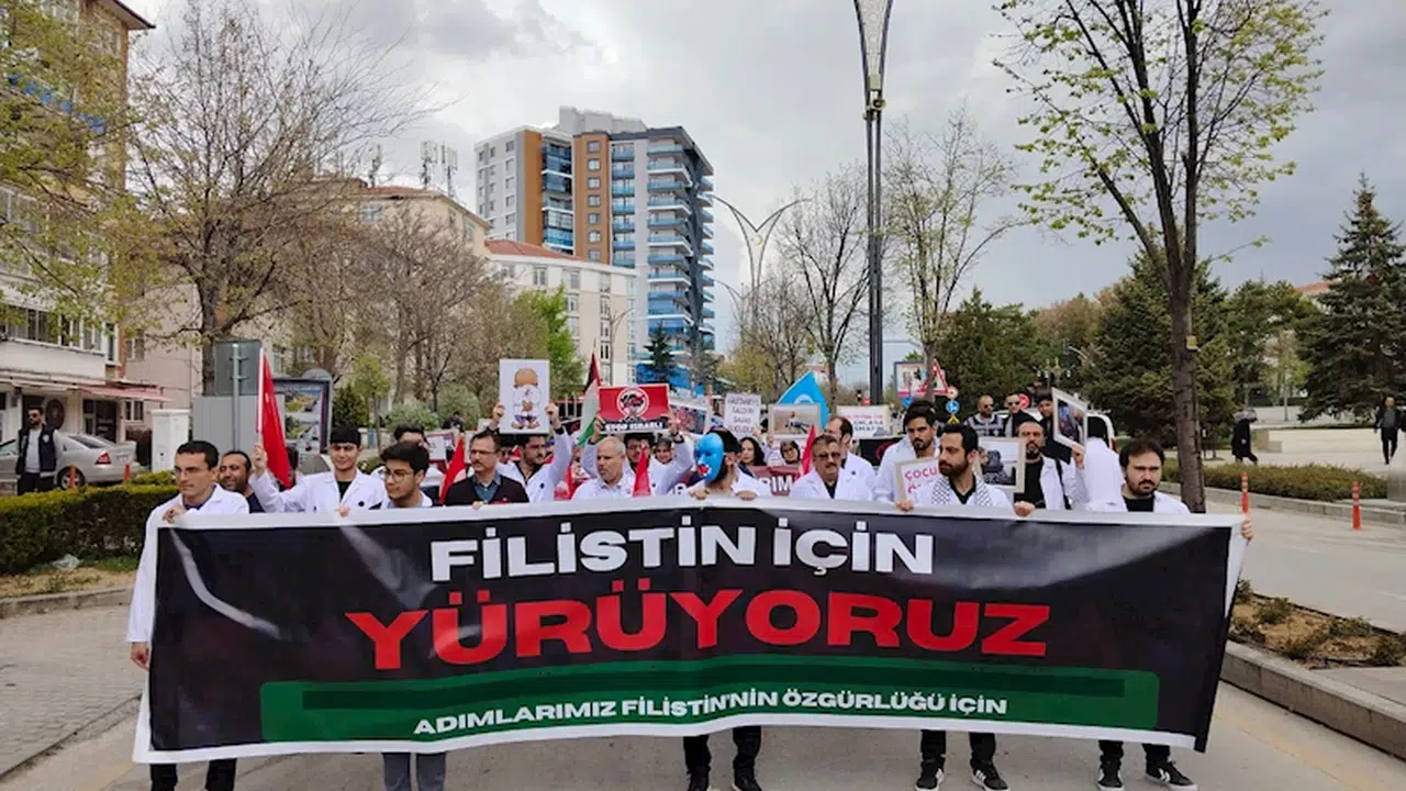 İsrail'in Gazze'ye yönelik saldırılarını Kırşehir'de protesto etmek isteyen doktorlar Merkez Askerlik Şubesi kavşağında buluştu. Ellerinde 'Soykırım, işgal ve teröre karşı hekimlerden sessiz yürüyüş' pankartı ile ‘Beyaz önlükler kana bulanmasın’, ‘Hastaneye saldırı savaş suçudur’, ‘Savaş değil, soykırım’ yazılı dövizler taşıyan doktorlar Cacabey Meydanı'na kadar sessiz şekilde yürüdü. Grup adına konuşan Ahievran Üniversitesi Tıp Fakültesi öğrencisi Ahmet Salih Ceylan, “Çocuklara karşı açılmış bir savaş, çocuklar için harcanan mühimmat ve sırf çocuklar zarar görsün diye yapılan onca şey ve bunlar karşısında derin bir sessizlik içerisinde olan bizleriz. Korkarım İsrail Gazze’den önce bizi işgal etmiş olmalı. Öyle ki böylesi bir zulüm karşısında bile sergilediğimiz bu derin sükut tepki gösterecek hasselerimizin, duyularımızın ağır hasar almış olduğunun en net delillerindendir. Hal böyleyken muhakkak cevabının bulunması gereken sorulardan bir tanesi de işgal edilmiş insanlar olarak elimizden ne gelir? Sorunun cevabı açıktır. Kendisini kurtaramayan başkasını kurtaramaz. Onlar işgale kafalarımızdan, kalplerimizden, evlatlarımızdan başlayıp ve amaçlarına da büyük oranda ulaşmışken işgale uğramış bir toplumun manevi yaraları sarılmadan zalimlere karşı bir direniş göstermesi beklenemez" diye konuştu.