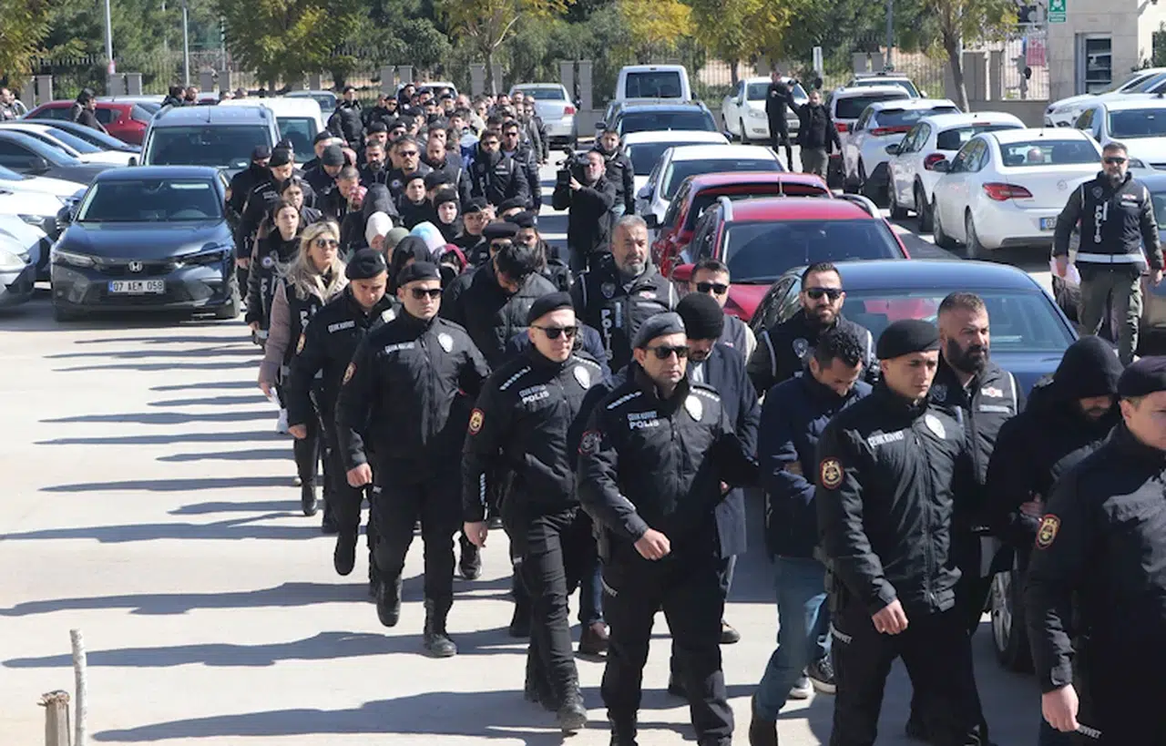 Antalya merkezli 31 ilde bir döner restoranı zincirine yönelik 'Kıskaç-40' operasyonu kapsamında gözaltına alınan 77 şüphelinin ifade işlemleri, Antalya Emniyet Müdürlüğü Kaçakçılık ve Organize Suçlarla Mücadele Şube Müdürlüğü'nde (KOM) tamamlandı. FETÖ'nün finansal yapılanmasına yönelik soruşturma kapsamında, aralarında döner şirketinin yönetim kurulu başkanı Ömer Şeyhin ve 6 yönetim kurulu üyesinin de bulunduğu şüpheliler, güvenlik önlemleri altında adliyeye sevk edildi. Şüpheliler arasında FETÖ ile iltisaklı olduğu için KHK ile ihraç edilen hakim ve kamu görevlilerinin bulunduğu da öğrenildi.