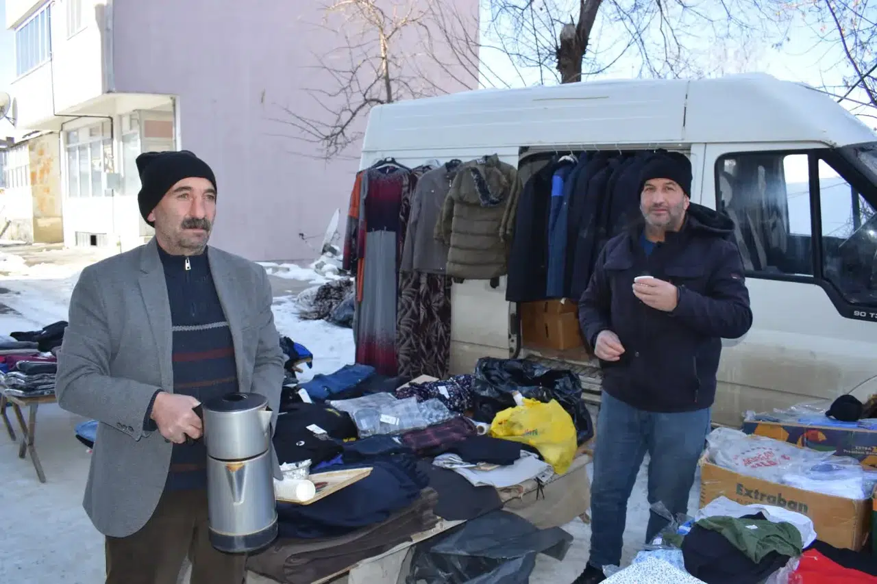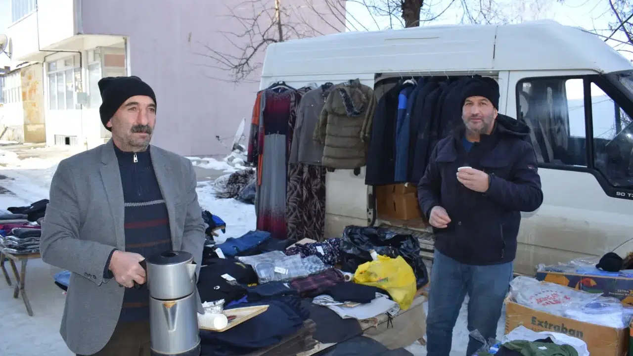 Kışta esnafı yalnız bırakmayan Şenkaya Belediyesi'nden sıcak çay ikramı!