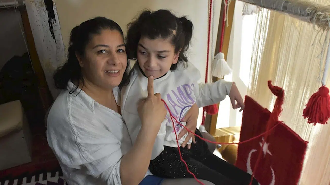 Nevra UÇKAÇ/İZMİR, (DHA)- İZMİR'de 8 yıl önce yüksekten düştüğü için kalbi durup yeniden hayata döndürülen Feride Sıla Özcan (11), tekerlekli sandalyeye mahkum oldu. Başak Özcan (44), aldığı yoğun fizik tedavi ve rehabilitasyon desteğiyle gelişim göstermeye başlayan kızı Feride için dokuma sanatını öğrendi. Türk bayrağı dokuyarak başladığı el sanatında zamanla ustalaşan Özcan, sattığı eserlerinin geliriyle kızının tedavisine destek olmak istediğini belirterek, "Hem dertlerimizi hem umutlarımızı dokuyoruz. Umutluyuz kızıma destek olabileceğimi düşünüyorum" dedi.