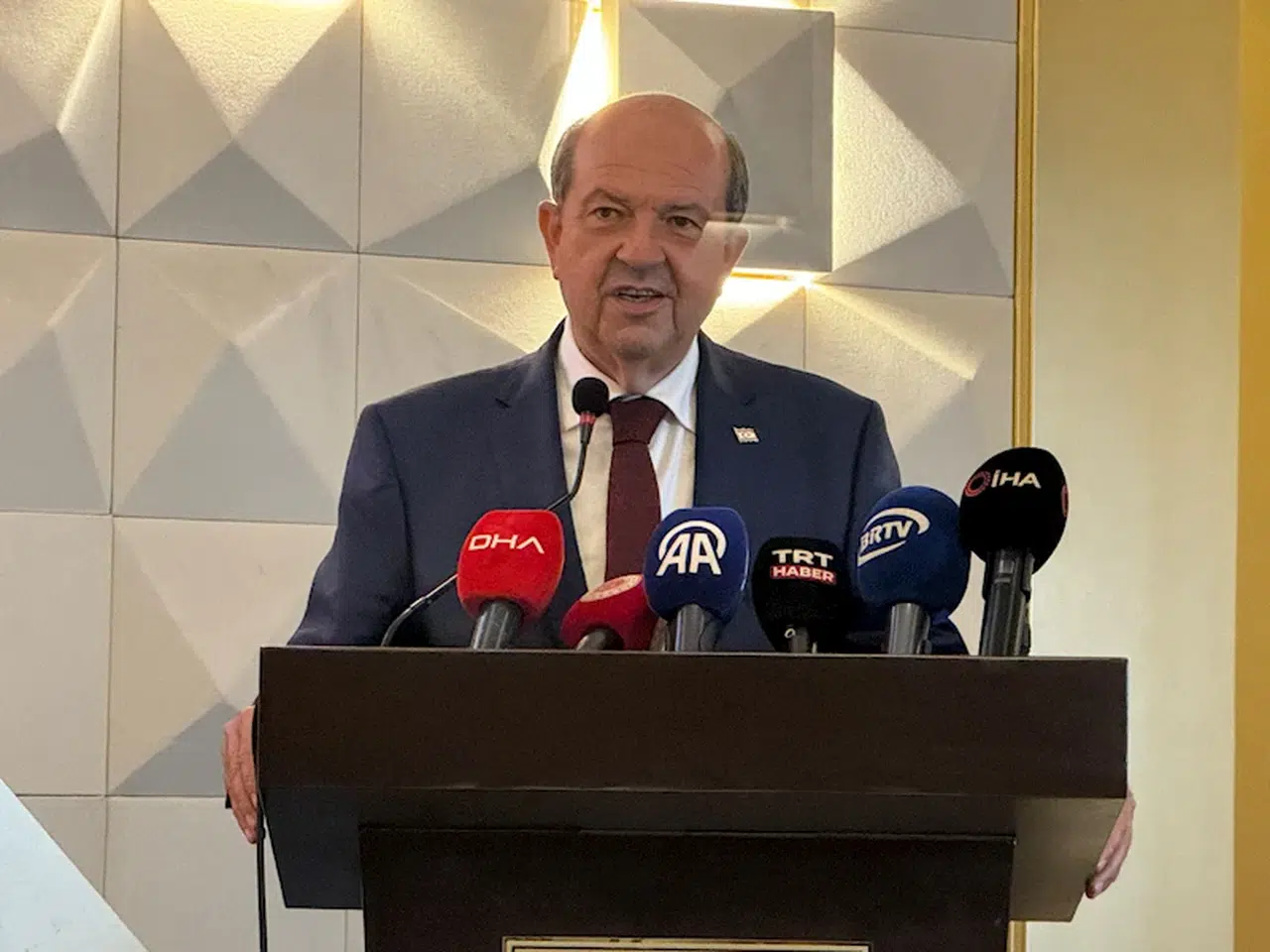 Kıbrıs Barış Harekatı'nın 50’nci yıl dönümü etkinliklerinde Cumhurbaşkanı Recep Tayyip Erdoğan’ın kalabalık bir heyetle gelerek Kıbrıs Türk halkının yalnız olmadığı mesajını verdiğini söyleyen KKTC Cumhurbaşkanı Tatar, “Sayın Cumhurbaşkanımız Kıbrıs’tan verdiği mesajla bütün dünyaya bir kez daha Kıbrıs Türk halkının yalnız olmadığı, Kıbrıs Türk halkının haklı davasında Anavatan Türkiye hükümetinin yanında olmaya devam edeceğini belirtmiştir. Türkiye Cumhuriyeti Avrupa Birliğinde olmadığı için herhangi bir federal çözüm çerçevesinde Türkiye Cumhuriyetinin adadan çekilmesi garantörlüğünün modası geçtiği için son bulması gibi bir takım tartışmalar artık geride kalmıştır. Yani milli siyasette, Kıbrıs’ta iki devletli bir çözüm için, bizlerin iyi niyetiyle yine ulusal toplumda bu meseleyi tartışabileceğimizi ama egemen eşitliğimizin ve ulusal sözünün teyidiyle ancak bir müzakere sürecinin tekrar başlayabileceğini Sayın Cumhurbaşkanı Recep Tayyip Erdoğan, Türkiye Cumhuriyeti adına da yine 20 Temmuz günü bunu bizlerle paylaşmıştır ve yüreklerimize su serpmiştir. Kendisine buradan bir kez daha teşekkürlerimi sunuyorum” diye konuştu.