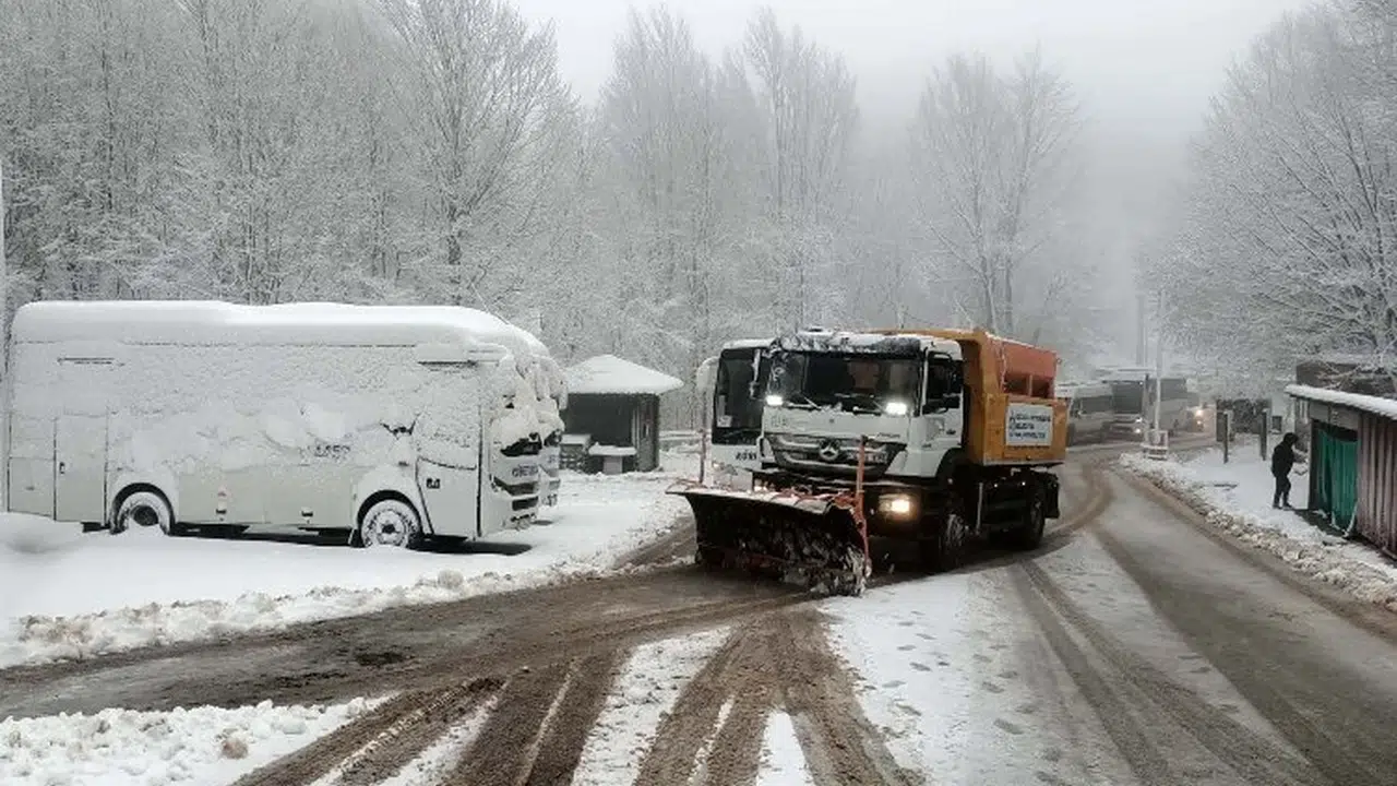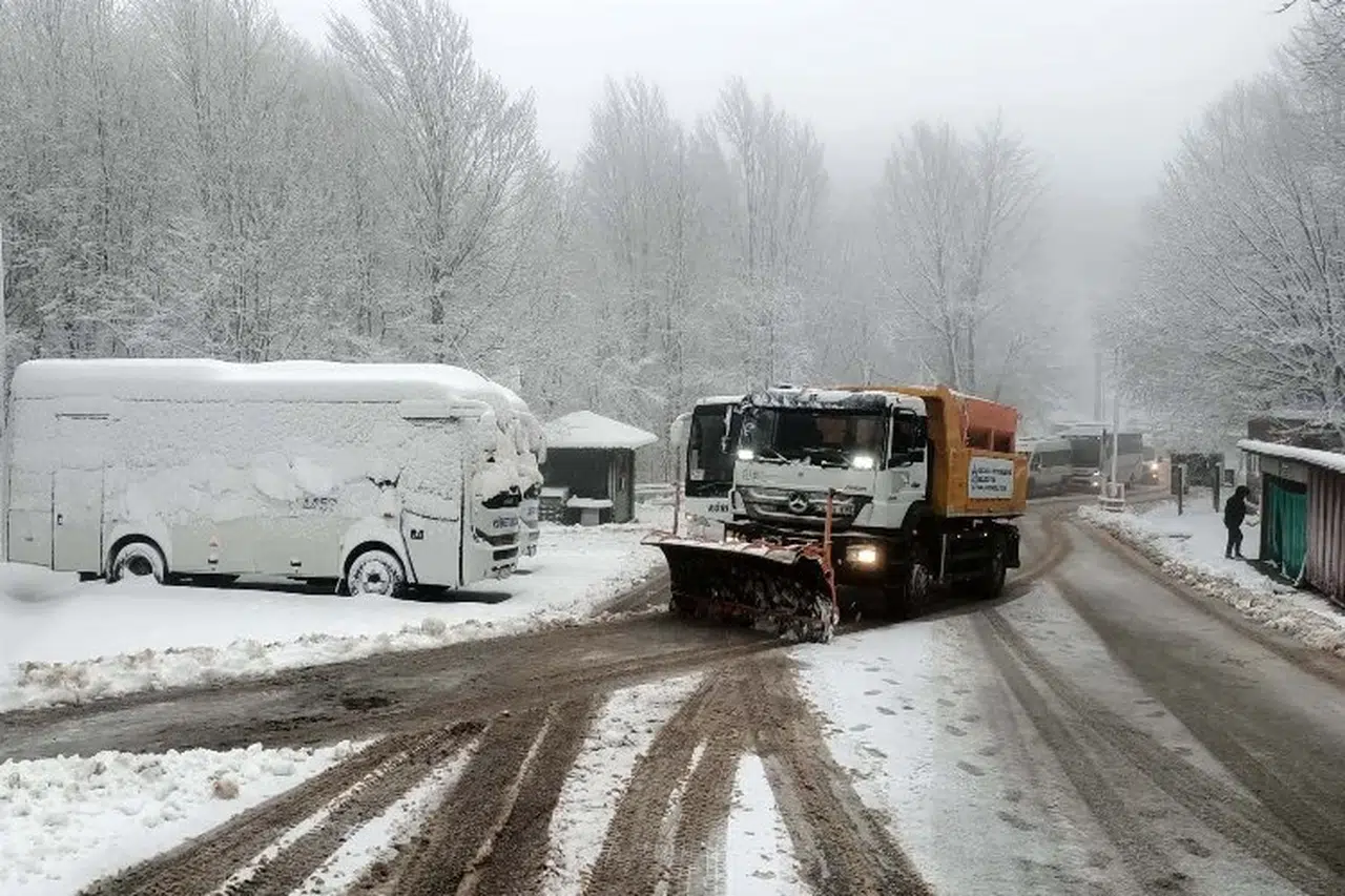 KOCAELİ (İGFA) - Kocaeli Büyükşehir Belediyesi’nin karla mücadele ekipleri, hafta sonu kentin rakımı yüksek noktası olan Kartepe zirve yolunda kar nöbetindeydi. Kar yağışının yollarda buzlanmaya sebep olmaması için sabaha kadar nöbet tutan ve bu bağlamda yollarda tuzlama ve kar küreme çalışmasında bulunan ekipler, kar yağışının yolları kapatmaması ve buzlanmanın sürücüler için olumsuz bir durum yaşatmaması için de çalışma yaptı.