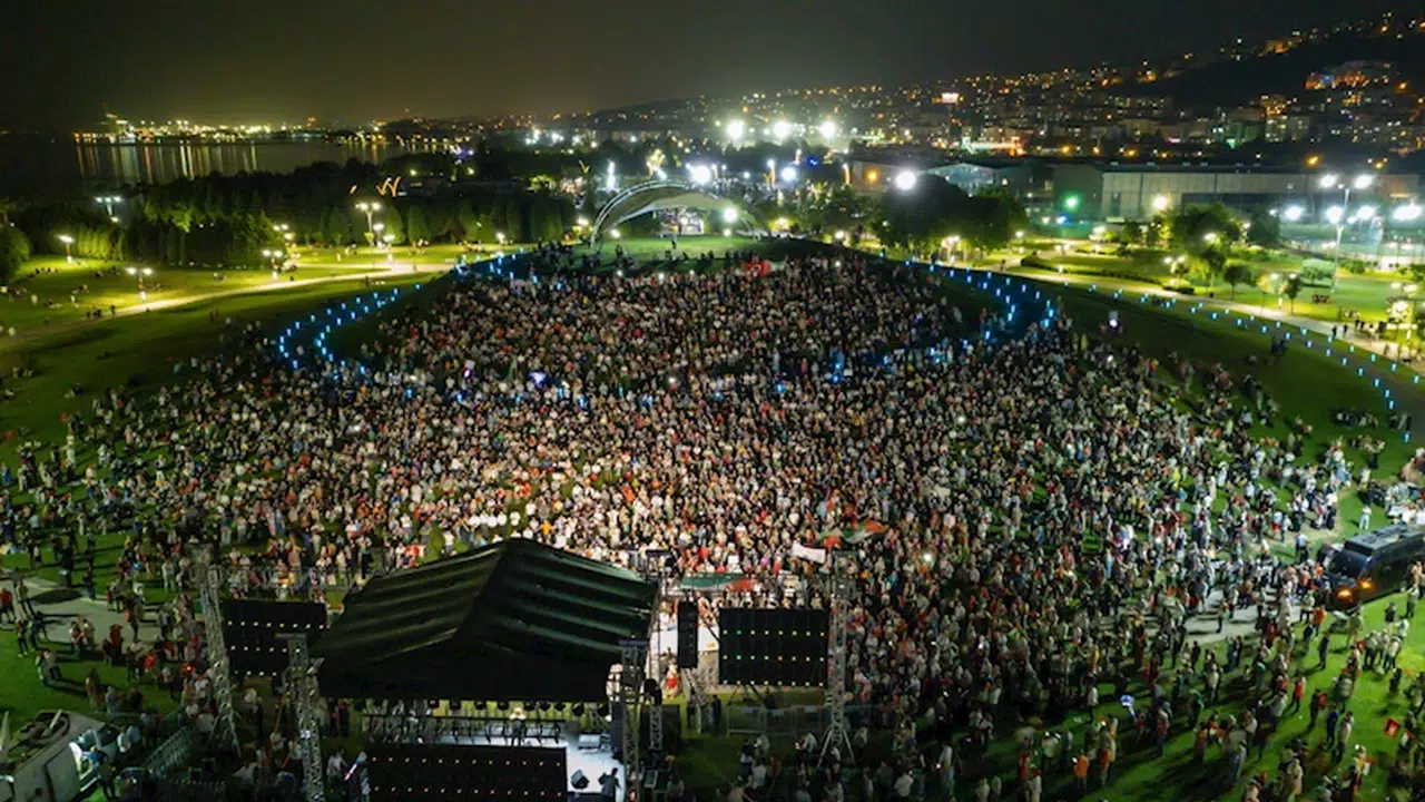 Kocaeli’de 200’den fazla sivil toplum kuruluşunun çağrısıyla 'Büyük Filistin Eylemi' gerçekleştirildi. Çok sayıda kişi, kentin 3 noktasında bir araya gelerek SEKA Park’a yürüyüş gerçekleştirdi. Bazıları İzmit Körfezi’nde, Kocaeli Büyükşehir Belediyesi’ne ait yolcu vapurunun da bulunduğu 100’e yakın tekne ile deniz aracına Türkiye ve Filistin bayrakları asarak SEKA Park’a geldi. Yürüyüş Uçurma Tepesi’nde sona erdi. (DHA)