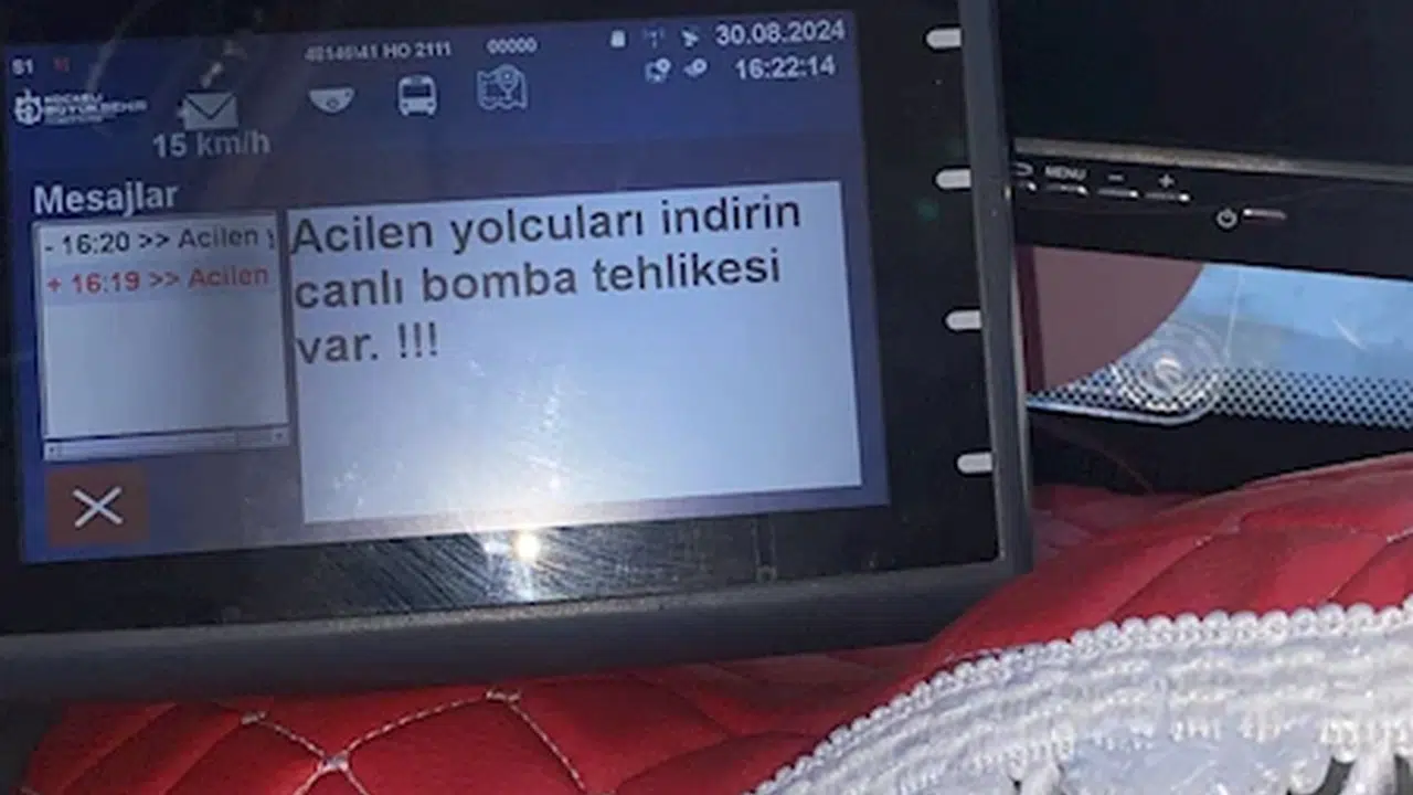 Kocaeli Büyükşehir Belediyesi’ne bağlı UlaşımPark’a ait otobüsler ve özel halk otobüslerinde kullanılan bilgilendirme ekranlarına bugün saat 16.20'de 'Acilen yolcuları indirin canlı bomba tehlikesi var' yazılı mesajlar iletildi. Mesajı gören otobüs şoförleri araçları durdurup yolcuları indirirken, mesaj üzerine polis ekipleri harekete geçti. Geniş çaplı yapılan araştırmada olayın sahte ihbar olduğu değerlendirilirken, herhangi bir olumsuzluk yaşanmadı.