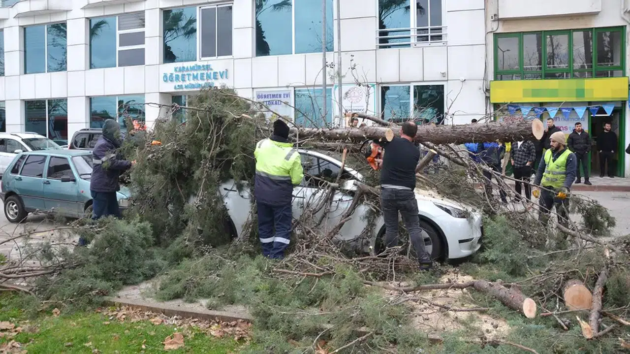 Karamürsel ilçesi 4 Temmuz Mahallesi Gazanfer Bilge Caddesi'nde de fırtına dolayısıyla bir ağaç, park halindeki 3 otomobilin üzerine devrildi.