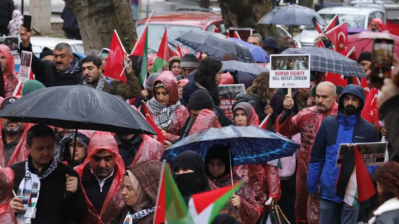 İzmit'teki Fevziye Camisi önünde, ellerinde Türk ve Filistin bayraklarıyla toplanan kalabalık, "Sıra Sende Kocaeli Özgür Filistin İçin Ayağa Kalk" yazılı pankartın arkasında yürüyüşe geçti. Yağmura rağmen yürüyüşe yoğun katılım gösterenler, İsrail aleyhine sloganlar atarak Anıtpark'a ulaştı.