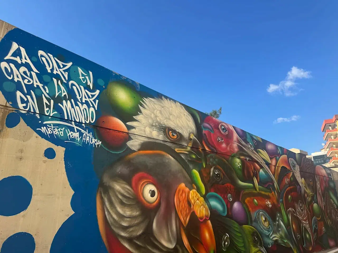 İZMİR, (DHA)-KOLOMBİYALI duvar ressamı Santiago Arboleda, İzmir Ekonomi Üniversitesi (İEÜ) kampüsünde yer alan bir duvara 'Barış ve biyolojik çeşitlilik' temasıyla eserini çizdi. Arboleda'ya, yaklaşık 1 hafta süren çalışmaları boyunca İEÜ'de İspanyolca eğitimi alan öğrenciler de destek verdi.