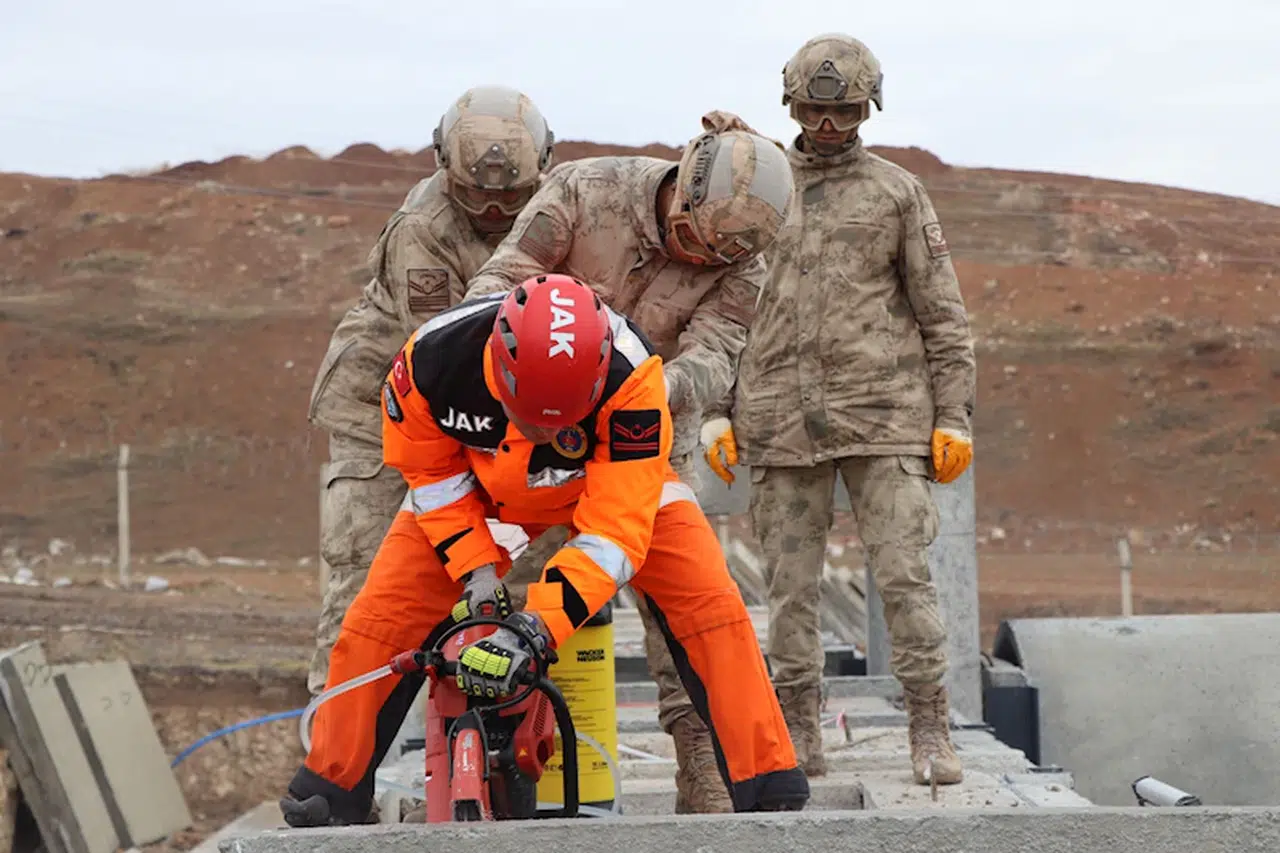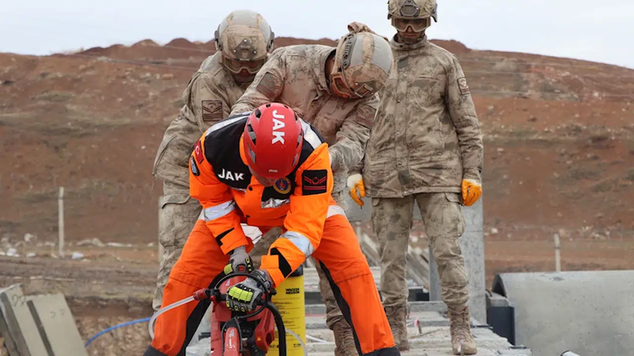 Uygulamalı eğitimlerde ise personel, enkazda arama kurtarma tekniklerini öğrenme fırsatı bularak, kurtarma ekipmanlarının kullanımı, enkaz altından insan kurtarma yöntemleri ve güvenli tahliye süreçleri konularında eğitim verildi. (DHA)