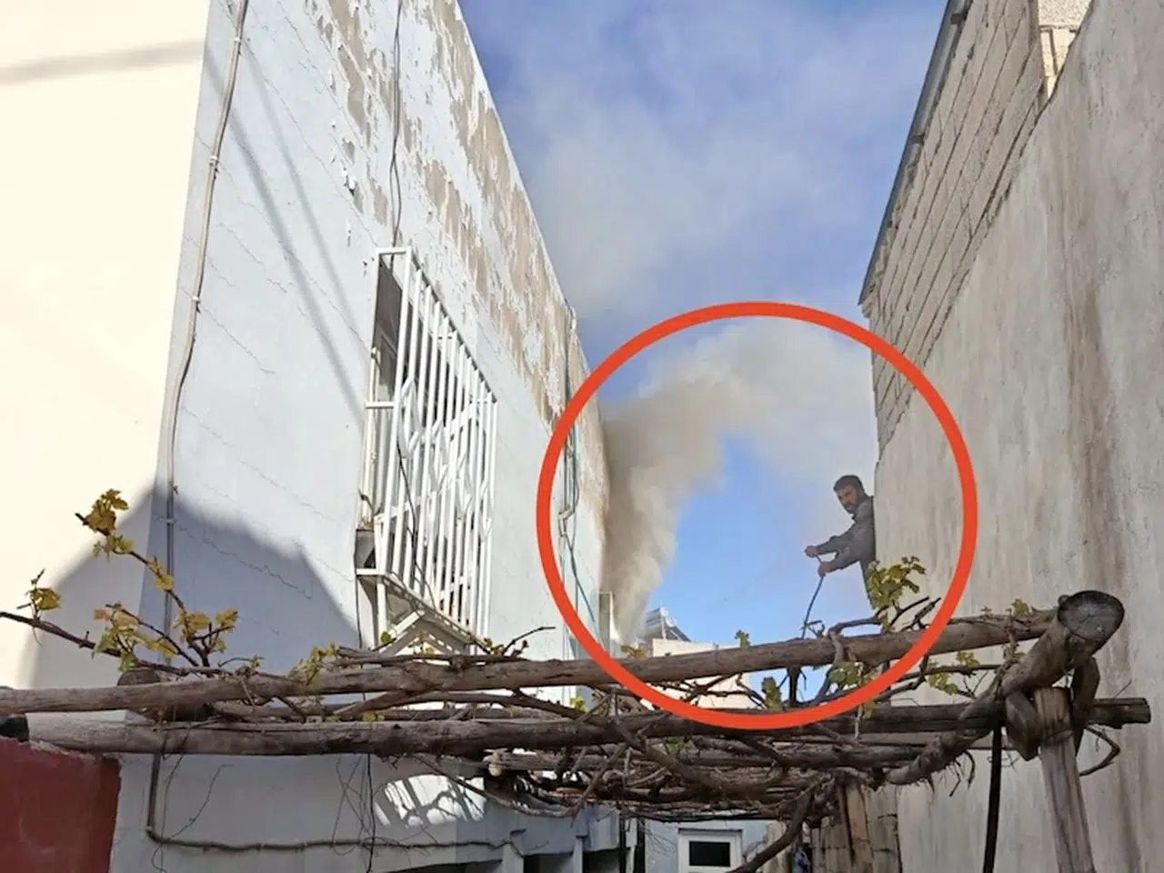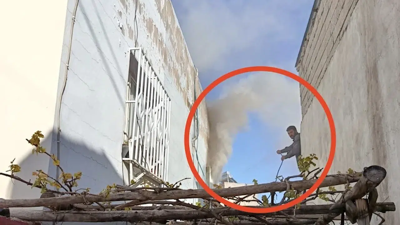 Komşusunun yanan evini, hortumla su tutarak söndürmeye çalıştı