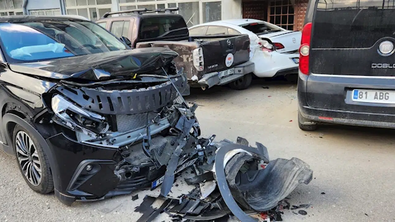Kaza, saat 09.00 sıralarında Yığılca ilçesi, Milli Egemenlik Caddesi’nde meydana geldi. Abdülkadir Uzun yönetimindeki 34 KMP 377 plakalı cip, sürücüsünün direksiyon hakimiyetini kaybetmesi sonucu, yol kenarında park halinde olan kamyonet, motosiklet ve 3 otomobile çarptı. Kazada yaralanan olmazken, araçlarda hasar oluştu. Kazayla ilgili tutanak tutuldu. (DHA)