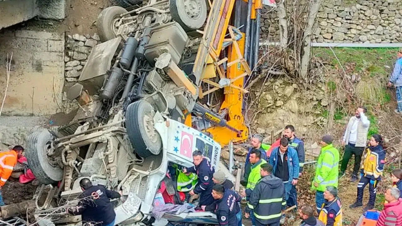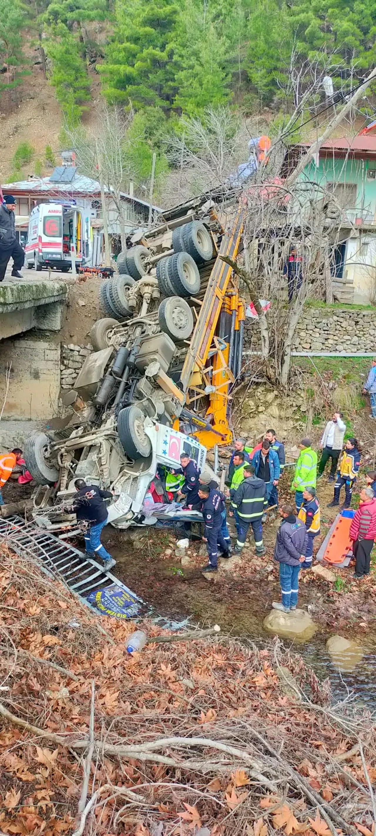 Kontrolden çıkan vinç yüklü kamyon ırmağa düştü: 2 yaralı