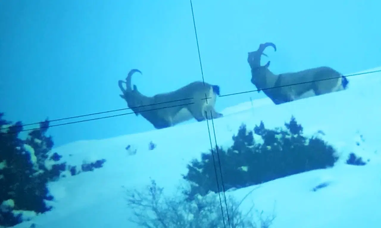 Murat SÖYLEMEZ/BAYBURT, (DHA)- BAYBURT’ta harita teknikeri Fatih Mehmet Daştan, Kop Dağı’nda çalışırken harita ölçüm cihazı kamerasıyla dağ keçilerini görüntüledi.