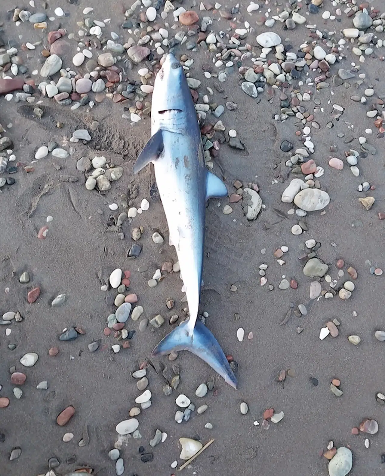 Finike sahilinde bu sabah saatlerinde yürüyüş yapan Hüseyin Bolat, yavru bir köpek balığı ölüsüne rastladı. Yaklaşık 80 santimetre uzunluğunda, 'Mako' cinsi olduğu tahmin edilen yavru köpek balığının ölümüne neyin sebep olduğu öğrenilemedi. Köpek balığının Finike Belediye Temizlik İşleri Müdürlüğü ekipleri tarafından sahilden alınarak uygun bir alana gömüldüğü belirtildi. (DHA)