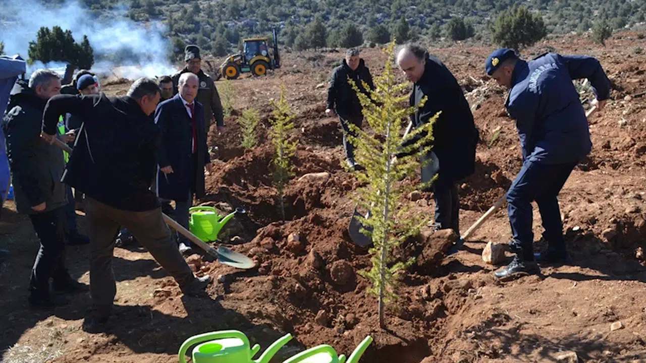 Adem DURMAZ/KORKUTELİ, (DHA)- ANTALYA'nın Korkuteli ilçesinde 21 Mart Dünya Ormancılık Günü ve Orman Haftası dolayısıyla düzenlenen etkinlikte sedir fidanları toprakla buluşturuldu.