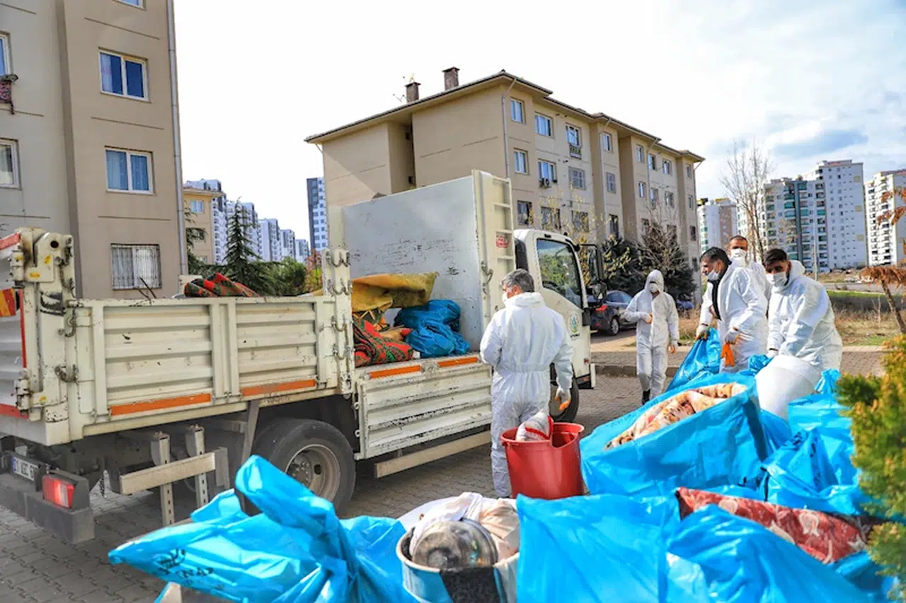 Kayapınar ilçesi Talaytepe Mahallesi Sosyal Konutlar'daki 4 katlı binanın 2'nci katındaki daireden gelen kötü kokular üzerine çevredekiler, belediyeye ihbarda bulundu. Adrese sevk edilen Kayapınar Belediyesi ekipleri, ev sahibi ile görüştü. İsmi belirtilmeyen 65 yaşındaki kadının yalnız yaşadığı öğrenilirken, kontrolde odalarda çöp biriktirildiği görüldü. Kadın kontrol için hastaneye götürülürken, çöpler evden çıkarıldı. Bir kamyon çöpün çıktığı evde daha sonra ilaçlama ve dezenfekte işlemi gerçekleştirildi. (DHA)
