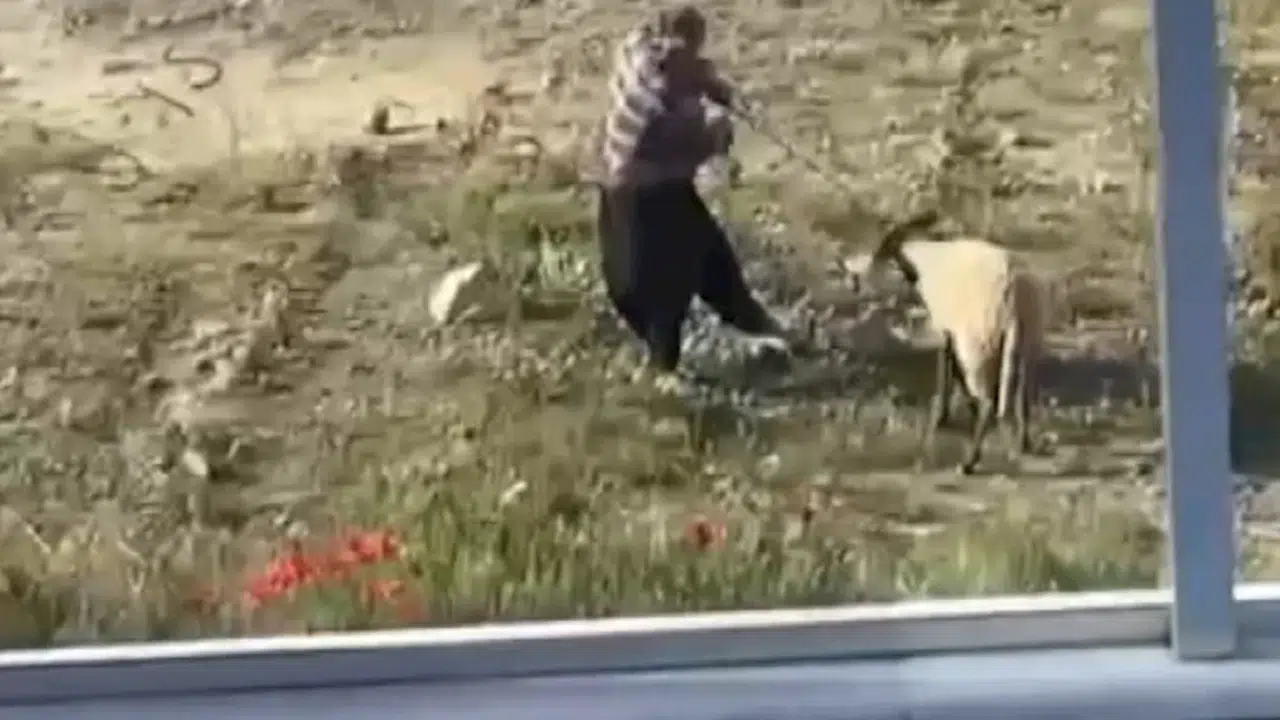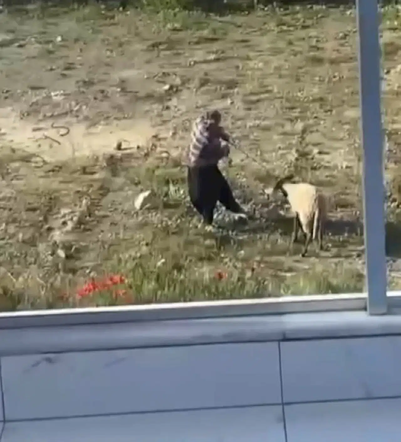 Koyuna kalın iple vurup, defalarca tekmeledi