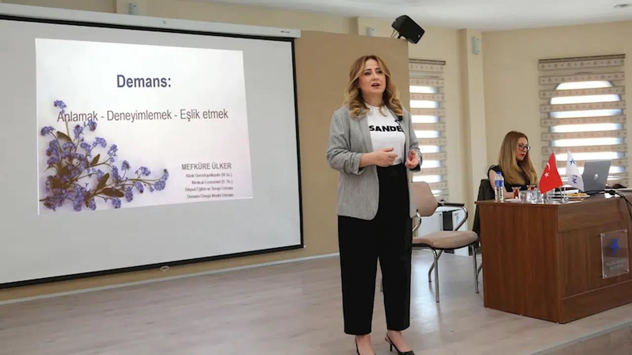 Klinik Gerontopsikiyatrist Mefküre Ülker, demans hastalarıyla iletişimi kolaylaştırmanın yollarını anlattığı seminerde “Bir demans hastasının bakımını üstlenen aile fertleri eski anılara bağlanarak, bu hastalar için güvenli alan yaratabilirler. Onlar için hazırlayacağınız bir hatıra albümü demans hastası kişilerin karşısındaki ile iletişimde kalmasına ve başkalarıyla konuşmasına yardımcı olabilir. Bu albüm, kişiye geçmişe bakma güzel zamanları hatırlama fırsatı verir. Ailedeki önemli kişiler ya da soy ağacı hazırlanarak demans hastasının isim, sima ve yerleri akılda tutmasına yardımcı olabilirsiniz. Ona her daim ismiyle seslenmeyi, göz teması kurmayı, elini tutarak sözlü iletişimi desteklemeyi unutmayın. Olumlu ve önemli kelimelerden oluşan kısa cümleler kurarak, onu düzeltmekten mümkün olduğunca kaçınarak, iletişimde başarılı olabilirsiniz” diye konuştu.