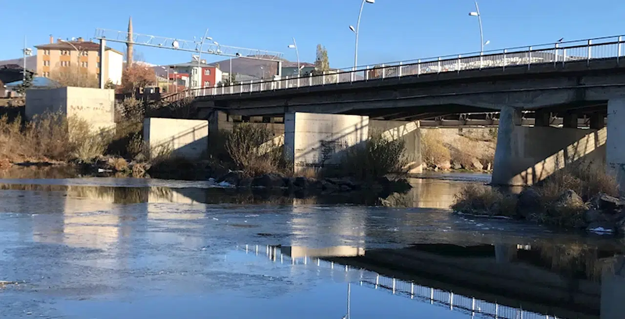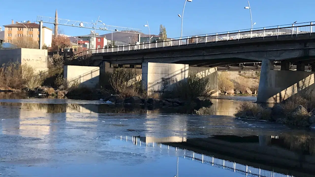 Dinçer AKTEMUR/ARDAHAN, (DHA)- ARDAHAN'da soğuk hava ve kar yağışı etkili olurken, Kura Nehri'nin yüzeyi de kısmen buz tuttu.