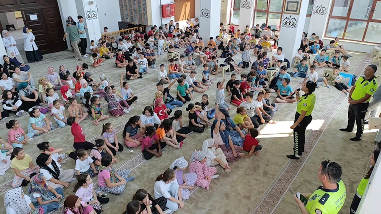 Kur’an kursu için camiye giden çocuklara trafik eğitimi ve dondurma ikramı