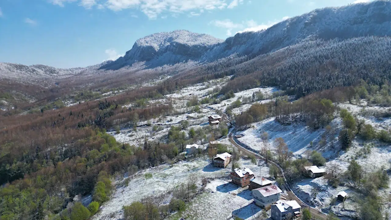 Küre Dağları Milli Parkı'nın Bartın’ın Arıt köylerindeki bölümlerinde 1400 rakıma ulaşan dağlarda kar yağışı etkili oldu. Yağış sonrası bölgede kar kalınlığı 10 santime ulaştı. Her mevsim ayrı güzelliğe bürünen milli parkta kar yağışının durmasıyla güneş yeniden ortaya çıktı. Kış mevsiminin tüm güzelliklerini içinde barındıran milli parkta manzaralar, ziyaretçileri hayran bıraktı. Milli parkın zirvesindeki 'uzun çarşı' bölümünde doyumsuz manzaralar ortaya çıktı. Milli parkın eteklerinde bulunan beyaz örtüyle kaplanan Sıralı, Esbey, Söğütlü, Aydınlar, Çorak, Hoşköy, Hatipler, Ören, İmamlar, Yeniköy, Umar, Turanlar, Çöpbey ve Hıdırlı köyleri ve eşsiz güzellikteki dağlar dronla görüntülendi. (DHA)