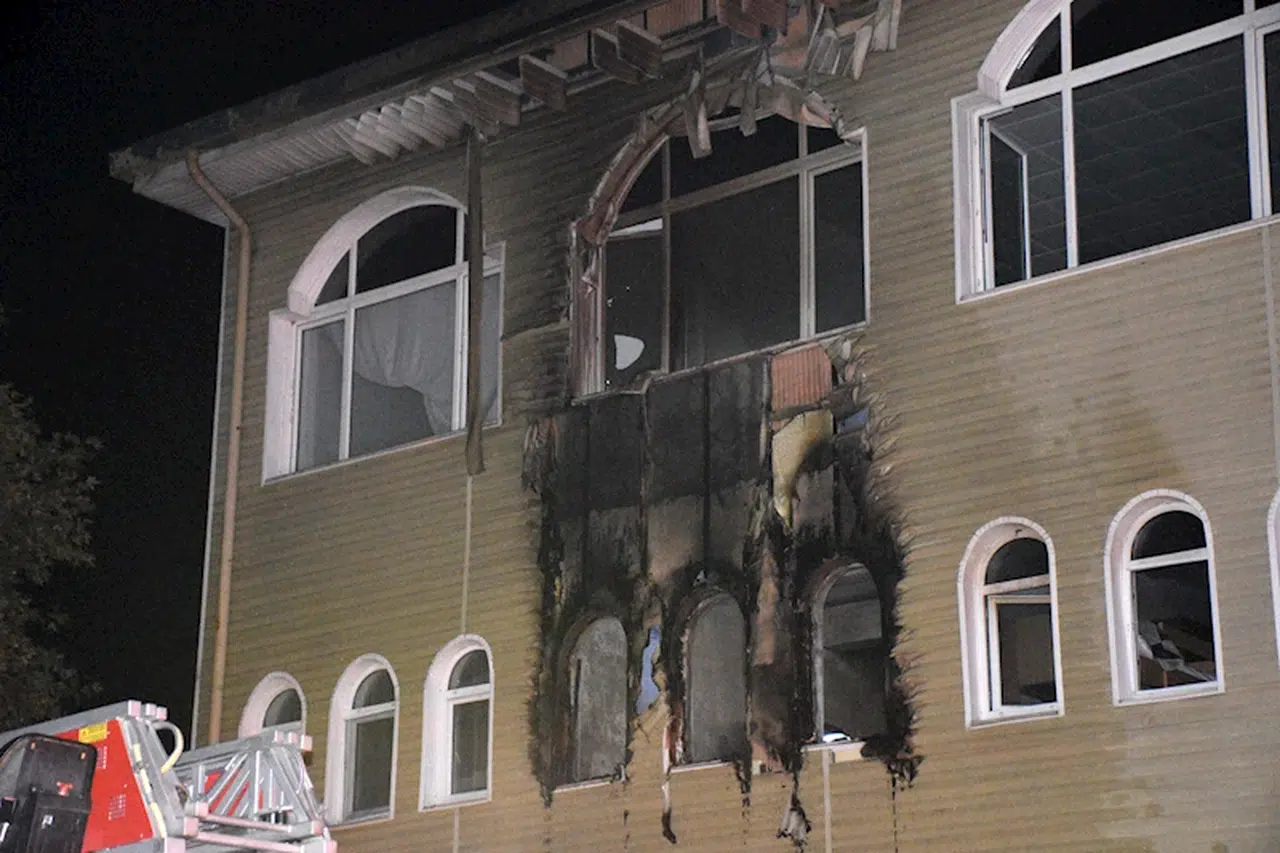 Afyonkarahisar'ın merkez Salar beldesinde İl Müftülüğü'ne bağlı Fatih Kur'an Kursu'na ait 3 katlı binada yangın çıktı. İkinci kattaki yatakhanede bilinmeyen nedenle çıkan yangına müdahale için çok sayıda itfaiye ekibiyle sağlık, jandarma ve AFAD ekipleri bölgeye sevk edildi. Ekiplerin müdahalesiyle söndürülen yangın sonrasında binada hasar oluştu. Dumandan etkilenen 2 öğrenci tedbir amacıyla Afyonkarahisar Devlet Hastanesi'ne götürüldü. Kursta kalan diğer 57 öğrenci ise farklı binalara gönderildi. Yangınla ilgili jandarma tarafından soruşturma başlatıldı. (DHA)