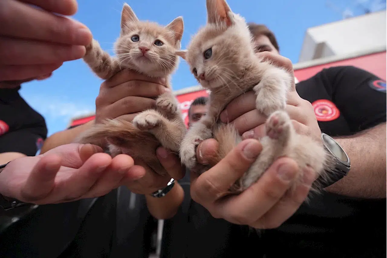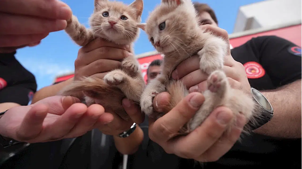 Kurtarma ihbarına gittiği kedi yavrularını sahiplendi