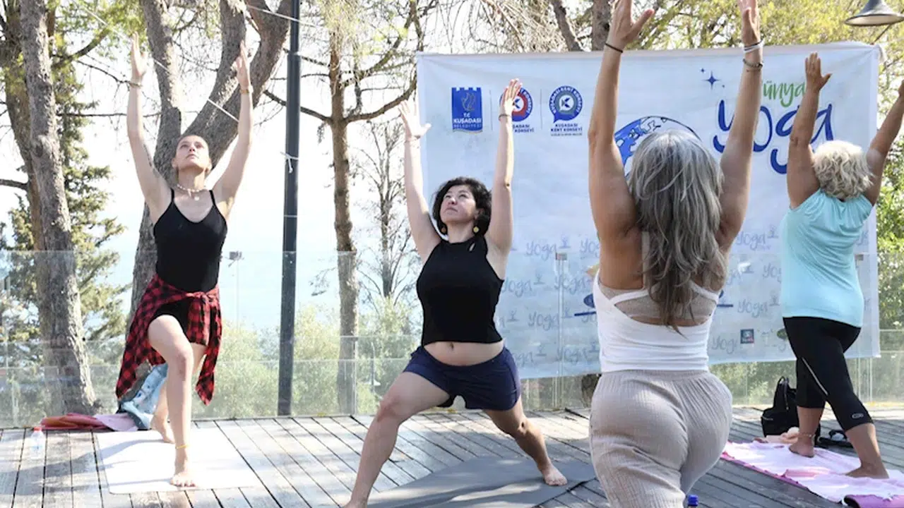 Birleşmiş Milletler (UN) 2014 yılında Türkiye'nin de içinde bulunduğu 177 ülkenin katkılarıyla 21 Haziran'ı 'Dünya Yoga Günü' olarak kabul etti. Bu kapsamda Kuşadası'nda da Kuşadası Belediyesi ve Kuşadası Kent Konseyi iş birliğinde diğer tüm ülkelerde olduğu gibi eş zamanlı kutlama etkinliği düzenlendi. UNESCO Dünya Mirası Geçici Listesi'nde yer alan Tarihi Güvercinada Kalesi'nin eşsiz manzarası eşliğinde gerçekleşen etkinlikte gencinden yaşlısına tüm Kuşadalılar hep birlikte yoga yaptı. Renkli görüntülere sahne olan etkinlikte, uzman antrenörler yoga severlere ayrıca çeşitli bilgiler de verdi. Güvercinada’daki etkinlikler saat 17.00’de yapılacak ders ile son bulacak. Ardından saat 18.00’de Güvercinada’dan İsmail Cem Dostluk ve Barış Meydanı’na yürüyüş gerçekleştirilecek. Kutlama etkinliği, meydandaki Mistik Dans ve Gün Batımı Yogası ile tamamlanacak.(DHA)