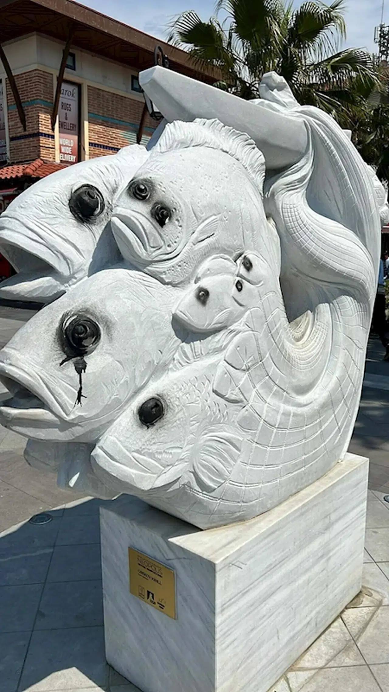 KUŞADASI (Aydın), (DHA)-AYDIN'ın Kuşadası ilçesinde, tarihi kervansaray önündeki balık heykelinin gözleri, kimliği belirsiz kişi ya da kişilerce siyah mürekkeple boyandı. Kuşadası Belediye Başkan Yardımcısı Seyfi Seyhan Süvari, konuyla ilgili yaptığı açıklamada kamera kayıtlarının incelendiğini, sorumlular hakkında suç duyurusunda bulunduklarını söyledi.