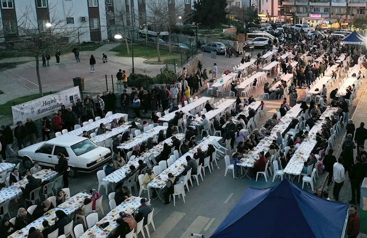 Hacıfeyzullah Mahallesi, 7 Eylül İlkokulu önünde verilen 1000 kişilik iftar yemeğinde bir araya gelen Kuşadalılar, okunan duaların ardından hep birlikte oruçlarını açtı. İftar yemeğine Kuşadası Belediye Başkan Vekili Çağlayan Erdem, Belediye Başkan Yardımcısı Seyfi Seyhan Suvari ve Ayşegül Dağlı ile birlikte belediye meclis üyeleri de katıldı. Kuşadası Belediyesi'nin ücretsiz olarak düzenlediği iftar yemekleri, 14 Mart Cuma günü İkiçeşmelik Mahallesi Kardeş Şehirler Parkı ile devam edecek.(DHA)
