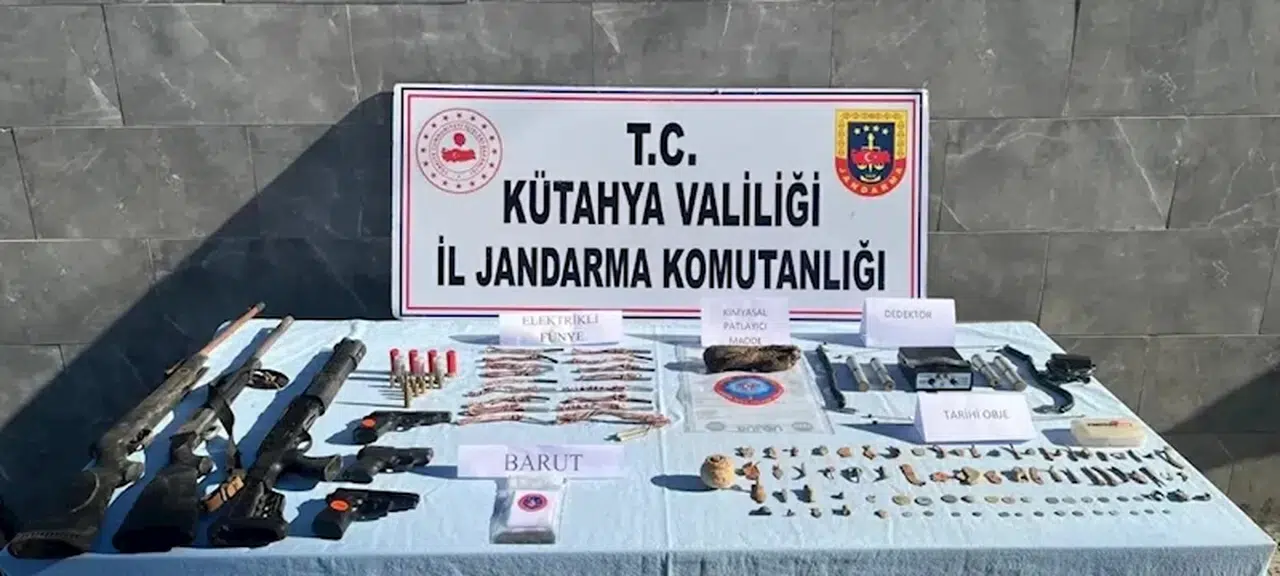 Kütahya İl Jandarma Komutanlığı ekipleri, istihbarat çalışmasıyla Gediz ilçesine bağlı Yeniköy köyündeki bir evde tarihi eserler olduğu bilgisine ulaştı. Harekete geçen ekipler, söz konusu eve operasyon düzenledi. Operasyonda, tarihi eser niteliğindeki çeşitli dönemlere ait olduğu değerlendirilen 120 obje, dedektör, kurusıkı 3 tabanca, ruhsatsız 3 tüfek ve izinsiz kazılarda kullanıldığı değerlendirilen bir miktar kimyasal patlayıcı madde ile 19 elektrikli fünye ele geçirildi. 3 şüpheli gözaltına alındı. Şüphelilerin jandarmadaki işlemlerinin sürdüğü bildirildi. (DHA)