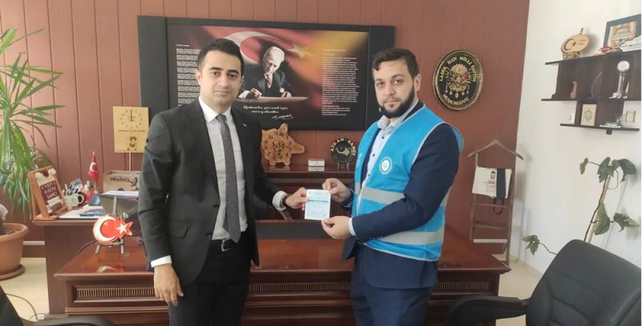 Orhan, İlçe Müftüsü Faruk Uslu'yu makamında kabul ederek bağış makbuzunu imzaladı.