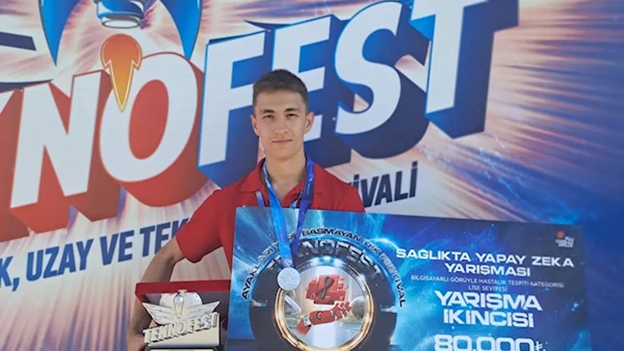 Yağmur ÖNGÜN / İZMİR, (DHA)-İZMİR Atatürk Lisesi' 11'nci sınıf öğrencisi olan Ahmet Akay (17), meme kanserinin ölümcül aşamaya geçmeden 2 ila 4 yıl önce tespit edilmesine olanak sağladığı yazılımıyla, 5 bin 393 takım ve 11 bin 457 yarışmacının katıldığı 2024 Teknofest Sağlıkta Yapay Zeka Yarışması'nda İzmirli LayerLords takımıyla Türkiye 2'ncisi oldu. Ödülü almaktan duyduğu memnuniyeti dile getiren Akay, "Anne ve babamın doktor olması nedeniyle hastane ortamında birçok kez bulundum. Bu süreçte, kanserle mücadele eden hastaların yaşadığı acı tecrübeleri yakından görme fırsatım oldu. Bu deneyimler, sağlık alanındaki sorunlara duyarlılığımı arttırdı" dedi.