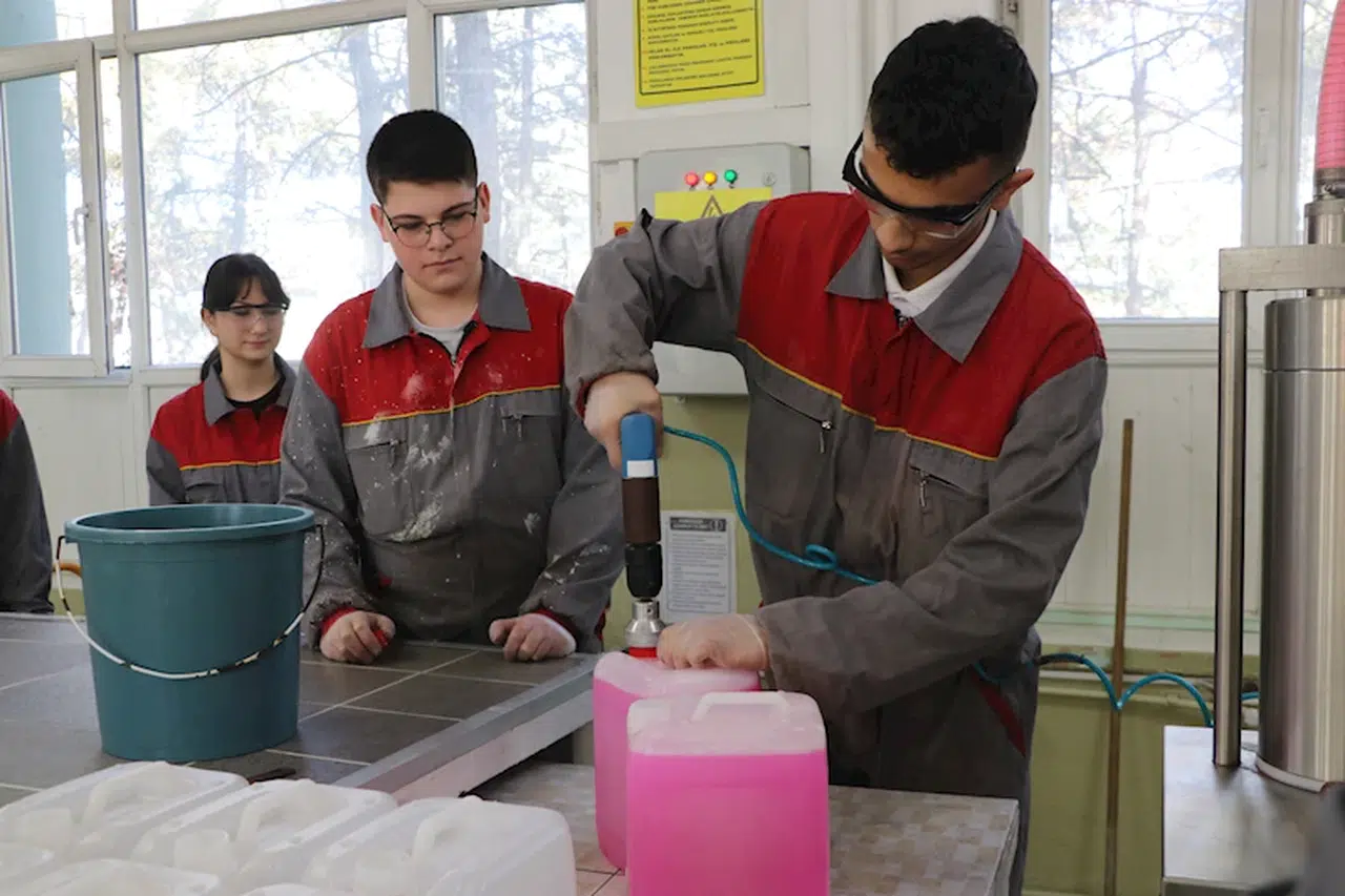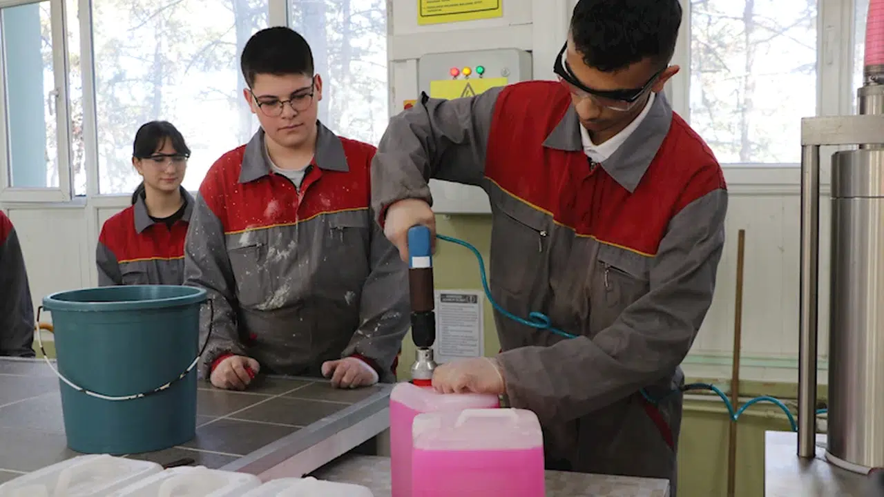 Okul Müdürü Mehmet İzci, yıllık 1 milyon 800 bin litre evsel ve endüstriyel bakım ürünü üretme kapasitesine sahip olduklarını belirterek, "Öğrencilerimiz okula bilinçli olarak geliyorlar. Öğrencilerimiz atölye eğitimlerinde almış oldukları yetkinlikten dolayı sanayi de ara elemanı olarak değil, asıl eleman olarak aranıyor" ifadelerini kullandı.