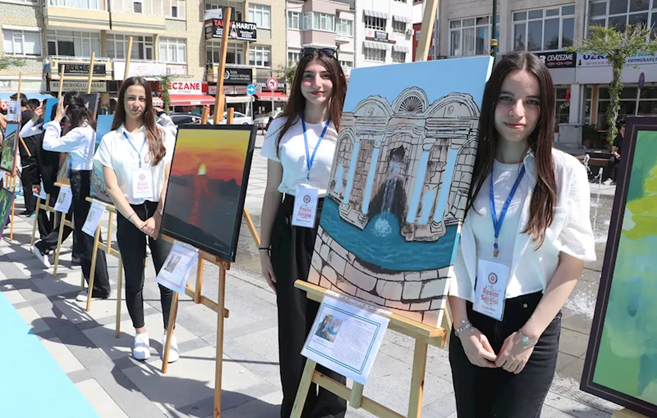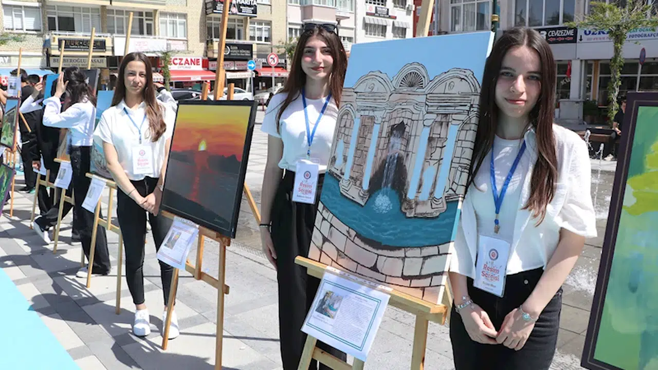 Mesut MADAN/BURDUR, (DHA)- BURDUR merkez 15 Temmuz Şehitler Anadolu Lisesi öğrencileri Cumhuriyet Meydanı'nda resim sergisi açtı.