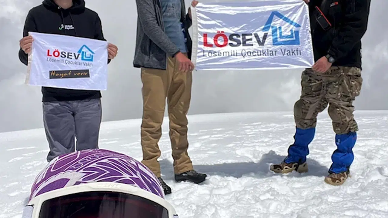 Nevra UÇKAÇ / İZMİR, (DHA) - İZMİR'de yaşayan ve hobi amaçlı dağcılık sporu ile ilgilenen, Lösemili Çocuklar Sağlık ve Eğitim Vakfı (LÖSEV) gönüllüsü İbrahim Gürlekçi (33), Azerbaycan'ın en yüksek dağı 4 bin 466 metre yükseklikteki Bazardüzü Dağı'na tırmanarak LÖSEV flaması açtı. Lösemiyi yenmiş gençler ile bir gün dağa tırmanmayı çok istediğini belirten Gürlekçi, "'Zirveden lösemili gençlere seslenip, yılmak yok mücadeleye devam' dedim. Bir LÖSEV gönüllüsü olarak güçlü, azimli, yükselen hedefleri olan idealist gençlere Bazardüzü zirvesini armağan etmek istedim. Ardından Türk bayrağını zirvede dalgalandırdık" dedi.