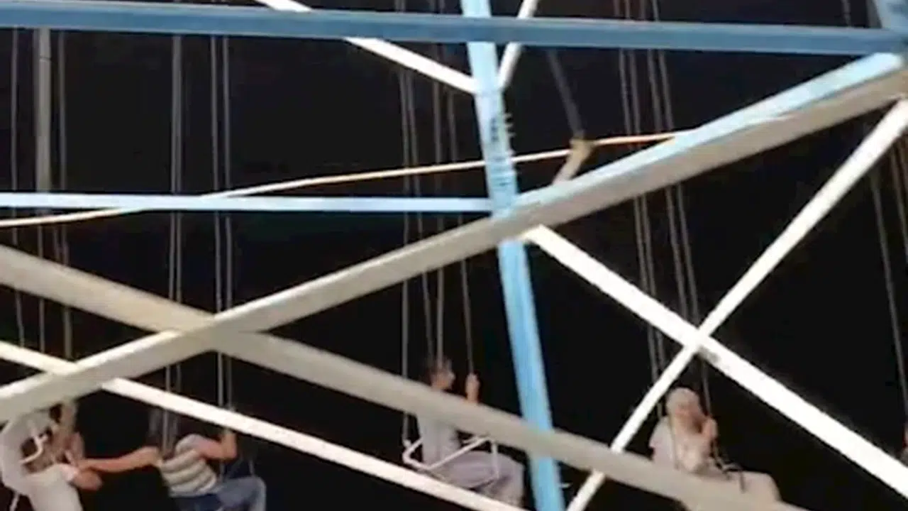 Edremit’te parkta adrenalin yaşamak için salıncağa binen erkek çocuğun emniyet kemeri bilinmeyen nedenle açıldı. Düşme tehlikesi geçiren çocuk, önündeki kız çocuğu tutundu. Durumu fark eden görevliler, salıncağı durdurup çocuğu düşmekten kurtardı. O anlar ise cep telefon kamerasına yansıdı. (DHA)