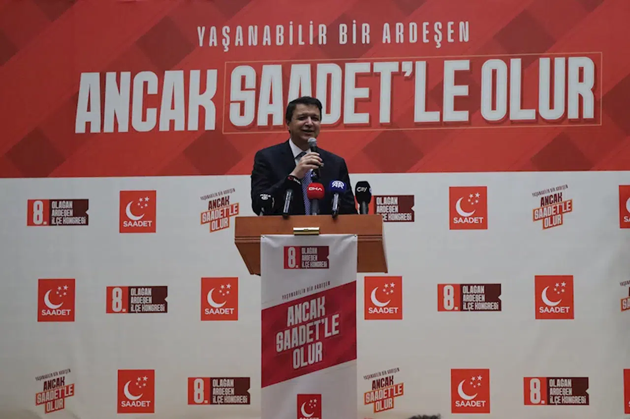 Saadet Partisi Genel Başkanı Mahmut Arıkan, partisinin 8’inci Olağan İl Kongresi'ne katılmak üzere Rize'nin Ardeşen ilçesine geldi. Kongrede konuşan Arıkan, "İnsanlarımız Saadet Partisi'ni bekliyor. Problemlerine çözüm bulabilecek, somut öneriler sunabilecek, dertlerini anlatabilecek temsilciler arıyorlar. Bu talebi gittiğimiz her yerde görüyor, hissediyoruz. İki gün önce üzücü bir hadise yaşadık. İstanbul'da önemli bir deprem hadisesi yaşandı. Türkiye, deprem bölgesinde olan bir ülke. Türkiye'de yaşayan insanların yüzde 96'sı deprem tehlikesi altında olan bölgeler içerisinde yaşıyor. Türkiye Cumhuriyeti'nin temellerini attığımız Kurtuluş Savaşı'nda 37 bin kardeşimizi kaybettik ama Kahramanmaraş depreminde bunun 2 katı kadar insanımızı maalesef kaybettik. Değerli kardeşlerim, tekrar tekrar söylüyorum; deprem öldürmez ama ihmal öldürür. Türkiye maalesef ihmaller silsilesinin yaşandığı bir coğrafya haline geldi. Maraş'ta bir depremin olacağına işaret edilmişti. Tatbikat edilmesine rağmen bir önlem alınmadı ve 70 bine yakın insanımızı maalesef kaybetmiş durumdayız. Ve o gün de o Maraş depreminden sonra da bugün olduğu gibi depremle alakalı neler yapılacağı, hangi tedbirlerin alınacağı günlerce, saatlerce televizyon ekranlarında, gazete köşelerinde anlatıldı duruldu. En başta Saadet Partisi olmak üzere, aklın ve bilimin sesine kulak veren bütün siyasi yapılar büyük İstanbul depremine dikkat çekmeye çalıştılar" dedi.