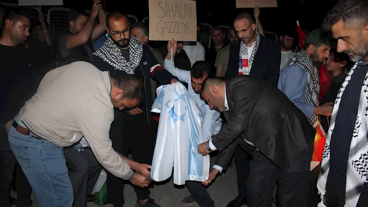 Slogan atarak tekbirler getiren kalabalık daha sonra dua edip, İsrail bayağı yakarak dağıldı.
