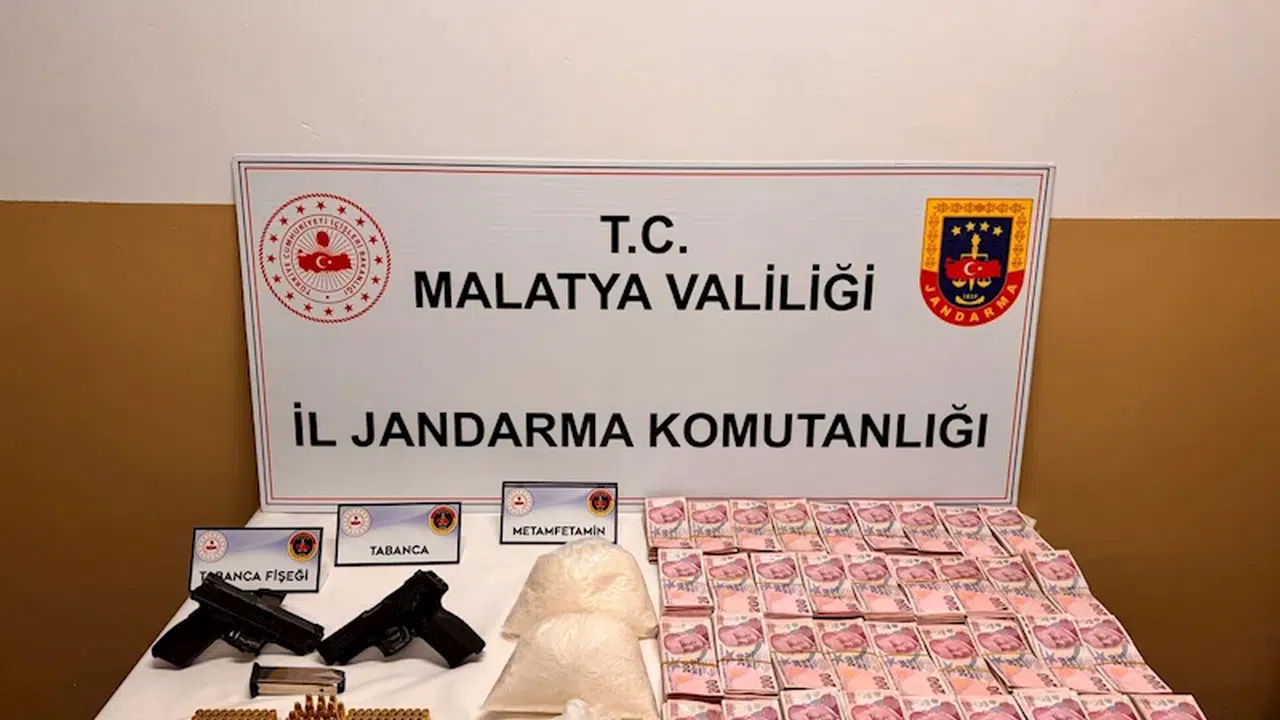 İl Jandarma Komutanlığı ekiplerince kaçakçılıkla mücadele kapsamında Yeşilyurt, Battalgazi ve Darende ilçelerinde operasyon düzenledi. Operasyon kapsamında arama yapılan adreslerde 2 kilo 502 gram metamfetamin, 500 gram bonzai, 5 tabanca, 142 tabanca fişeği, 5 ruhsatsız av tüfeği, 6 bin içi doldurulmuş makolaron, 6 kilo tütün, 4 bin sigara filtresi, 400 gram nargile tütünü, 200 paket bandrolsüz kaçak sigara ile suçtan elde edildiği değerlendirilen 818 bin TL nakit para ele geçirildi.