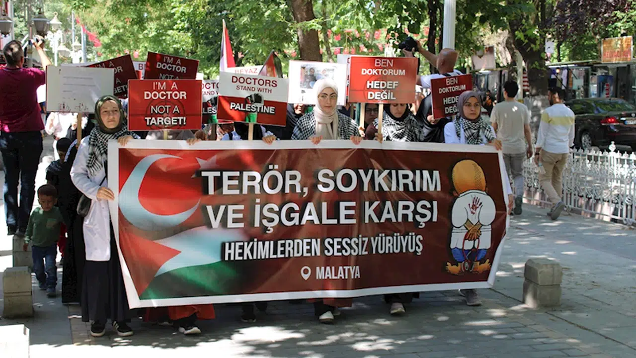 Battalgazi ilçesine bağlı Kanalboyu Caddesi üzerinde bir araya gelen sağlık çalışanları, İsrail'in Gazze üzerinde uyguladığı katliamı protesto etmek amacı ile ellerinde kanlı bebek maketleri ile yürüyüş düzenledi. Vatandaşların da eşlik ettiği yürüyüş Kernek Karagözlüler Camii önünde son buldu. Burada açıklamalarda bulunan Malatya Turgut Özal Üniversitesi Genel Sekreteri Dr. Ahmet Selim Özkan, Gazze'de Birleşmiş Milletlerin çadırının bile güvende olmadığını ifade ederek şunları söyledi: