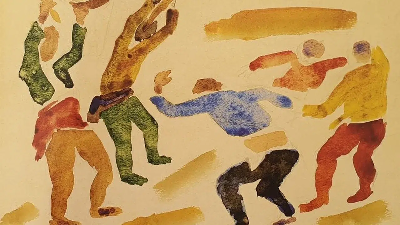Bursa Kent Müzesi koleksiyonunda bulunan Malik Aksel imzalı tabloda suluboya tekniğinde yapılmış olan tabloda, figürler renk lekeleri şeklinde belirtilmiştir. Resmin sol tarafında elinde davul çalar vaziyette bir kişi ve onun hemen üst tarafında zurna çalan bir figür bulunuyor. Resmin sağ tarafında ise üç kişi halay çeker şekilde betimlenmiştir. Resimde mekan sarı lekelerle belirtilmiştir.