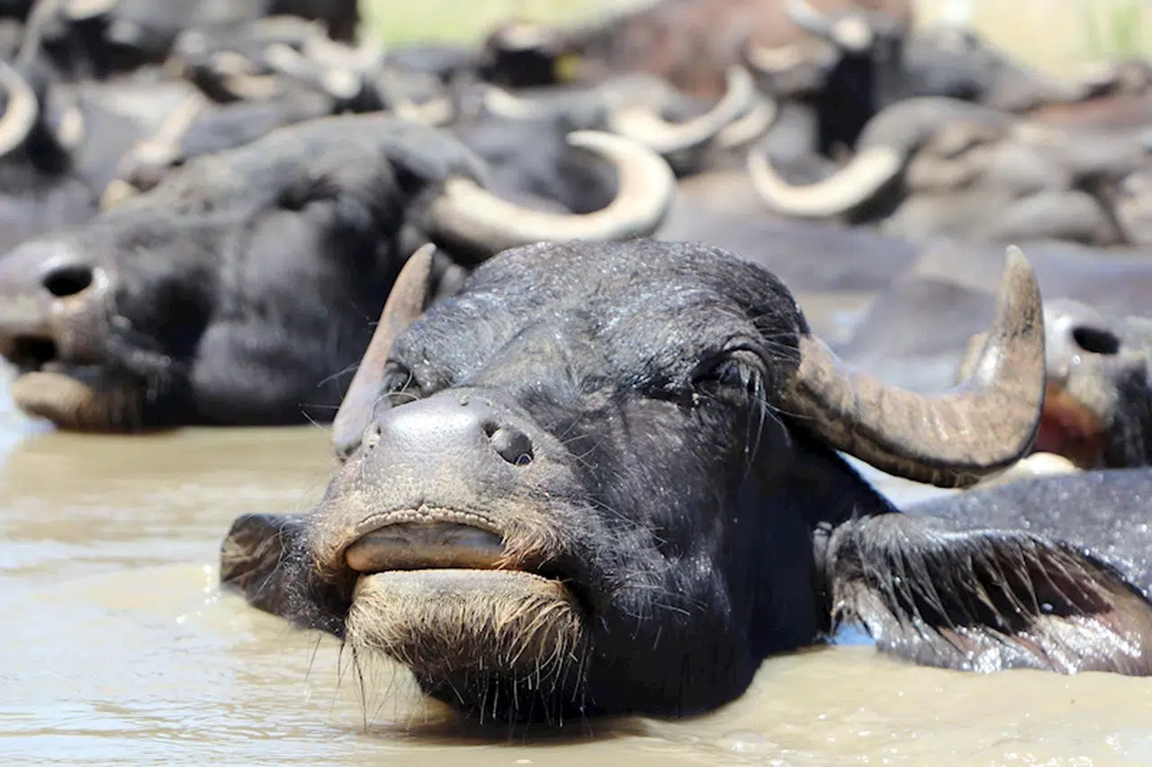 Turgay İPEK/ERZURUM, (DHA)- ERZURUM’un Aziziye ilçesinin kırsal Söğütlü Mahallesi'nde meralarda otlatılan mandalar doğal göletlerde çamurlu suda serinletiliyor.
