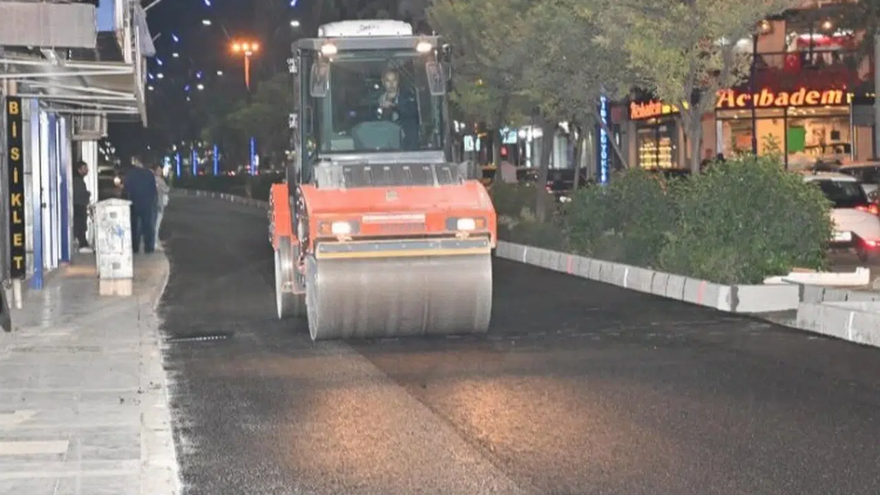 Manisa Büyükşehir Belediyesi, Şehzadeler ilçesi Kenzi Caddesi’ndeki prestij cadde düzenlemelerini hızla bitirmek için gece saatlerinde de çalışarak sıcak asfalt çalışmalarını tamamladı.