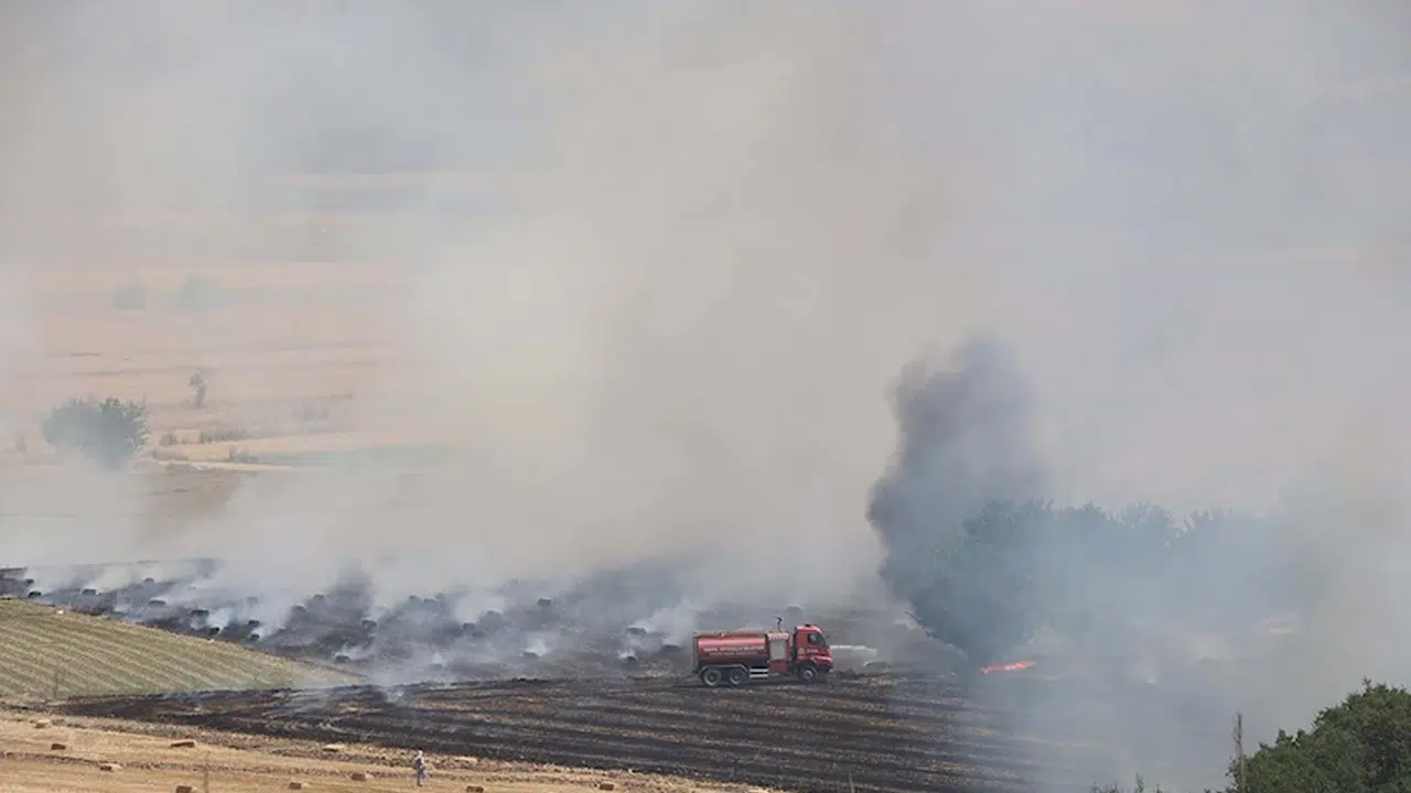 Manisa'da buğday tarlasında yangın; 100 dönüm alan yandı